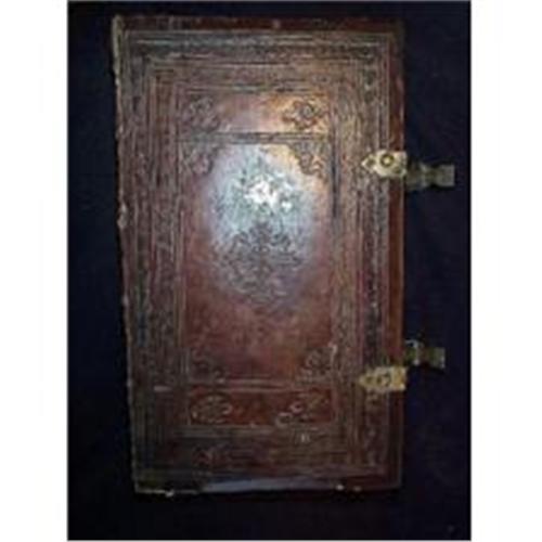 18th. century religious subject book printed on wood block in Slavonic. The chapters have beautiful ornate engravings and titles and principals are printed in red (rubrication). It is leather bound and the leather has intricate engraved ornaments. The book is bound with 2 brass bindings that have floral incised ornaments. This is a very rare book, well preserved, of museum quality. Dimensions: 13.3 inches x 8.2 inches depth: 2.8 inches (34 X 21 X 7 cm.). Estimated value: $12.000.