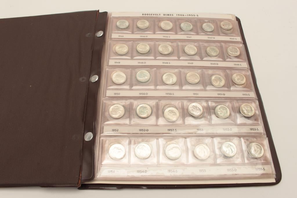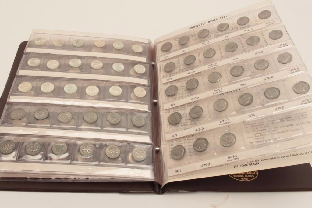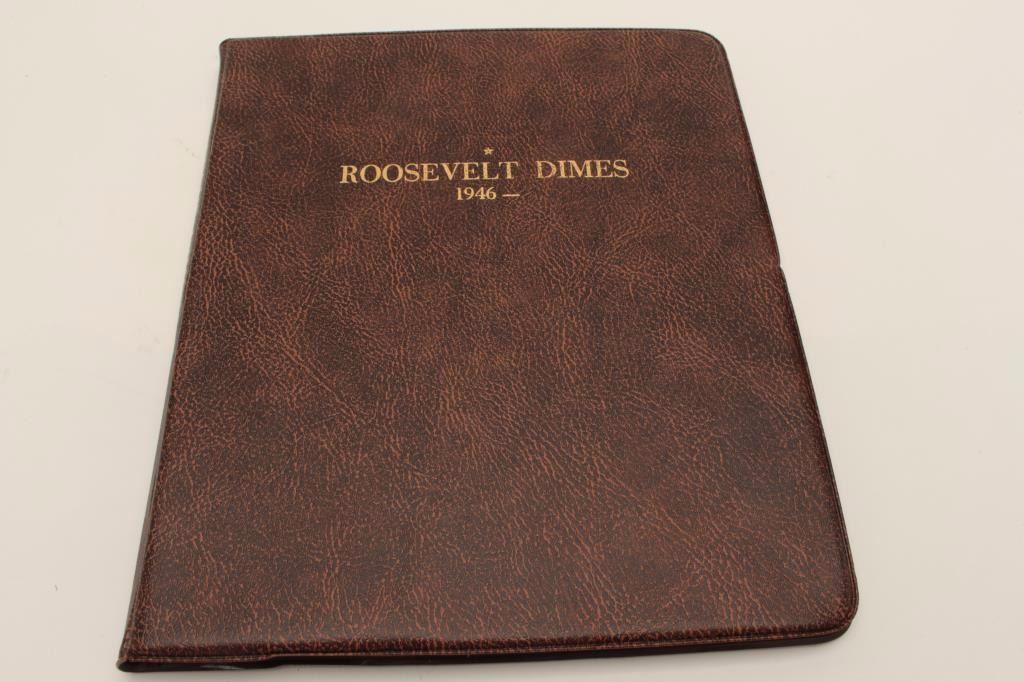 Book of Roosevelt Dimes 1946-1979(s) Complete 83 coins-in book. All uncirculated, averaging MS62-65, not professionally graded). Some toned, From Collector's Horde. Est$350-700++
