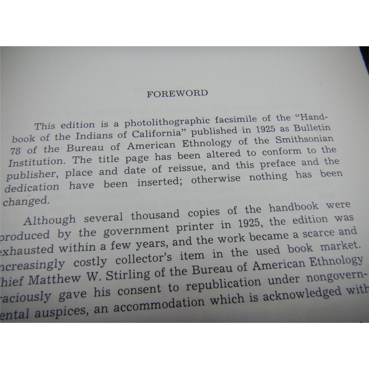Handbook of the Indians of California by A.L. Kroeber, cc 1953. The book has 995 pages, with graphs and illustration. The book is in good condition. Binding intact Shipping $12.00