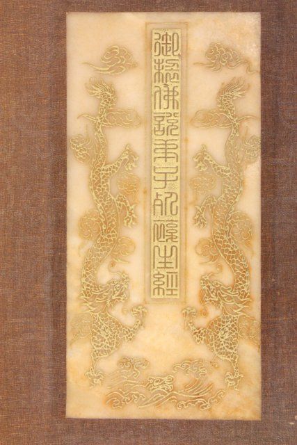 White stone with calligraphy. Approx. 9" x 5.75". Please read our terms of sale.