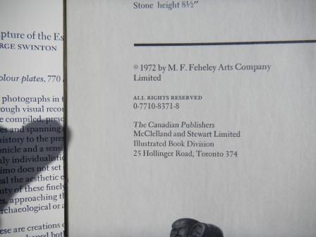 Book on Eskimo Sculpture many photos. Book is titled Sculpture of the Eskimo by George Swinton. Measures 13x10x1 inches. Shipping $15.00