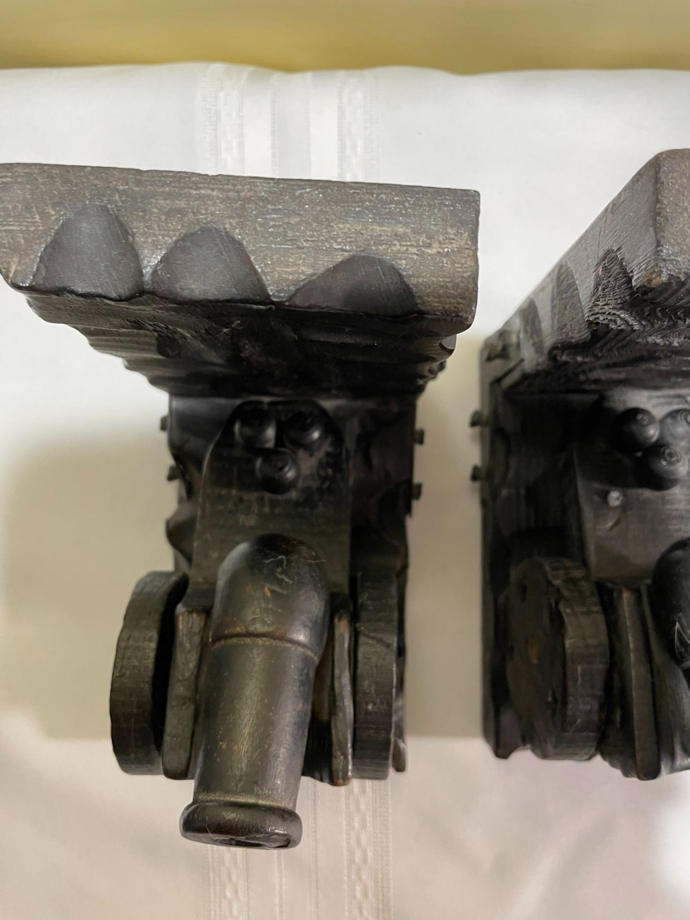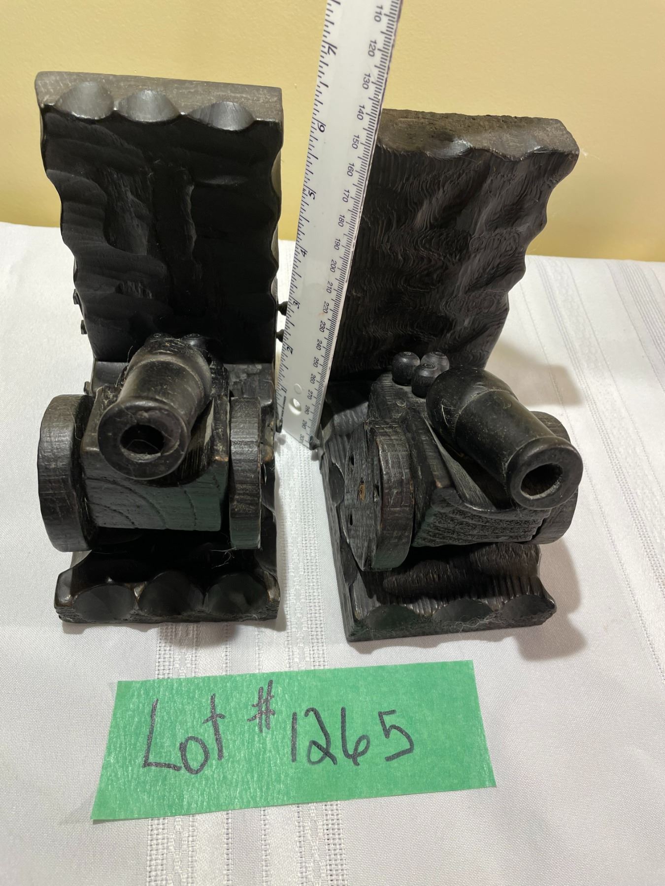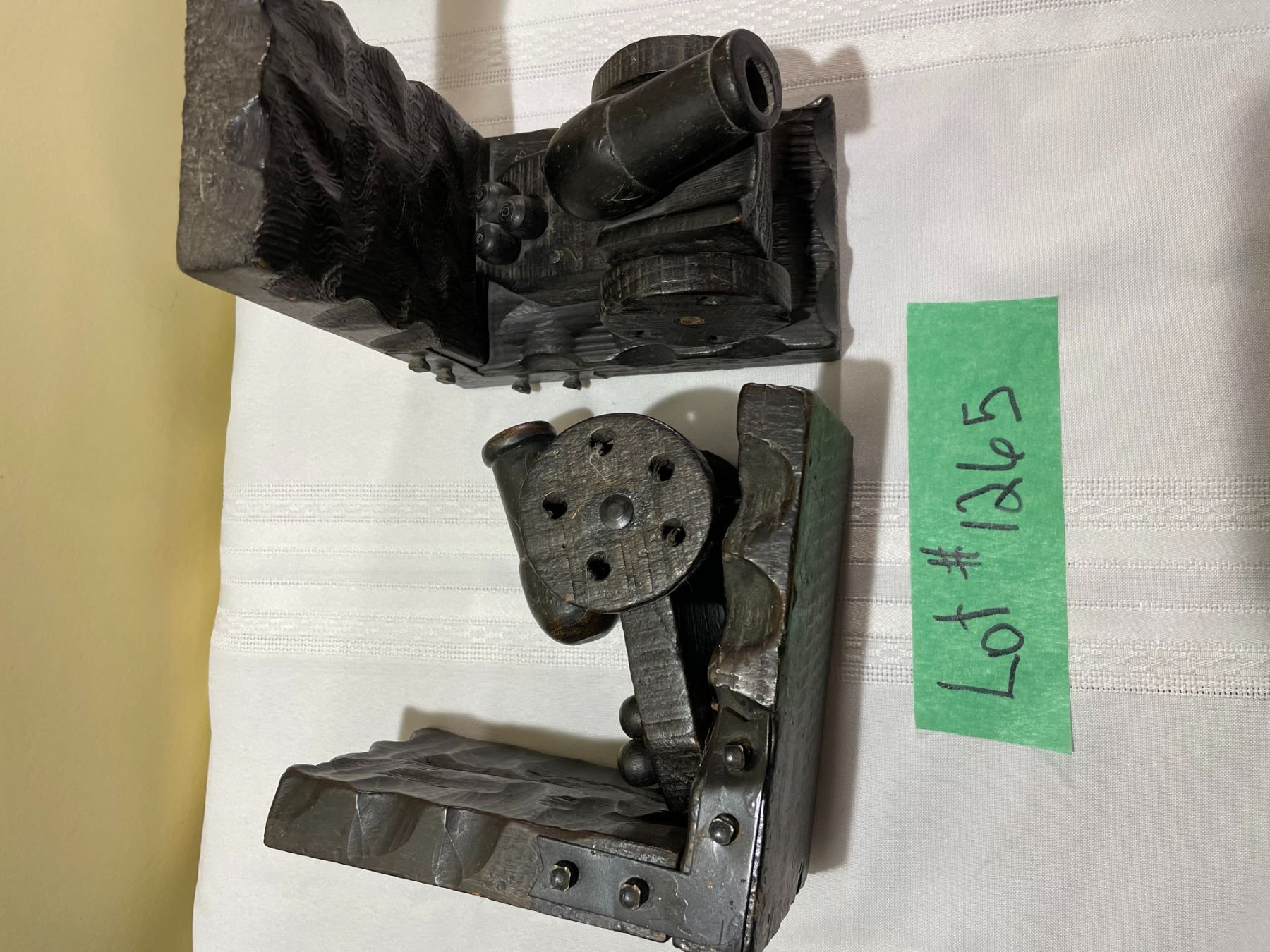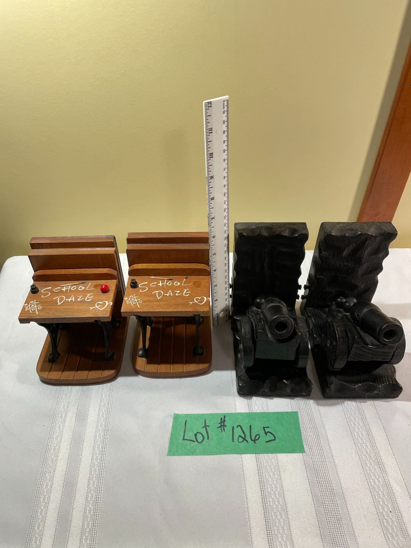 (1) Pair school Daze Bookends - Wood + Metal (1) Pair Wooden Canon Bookends - wood + some metal