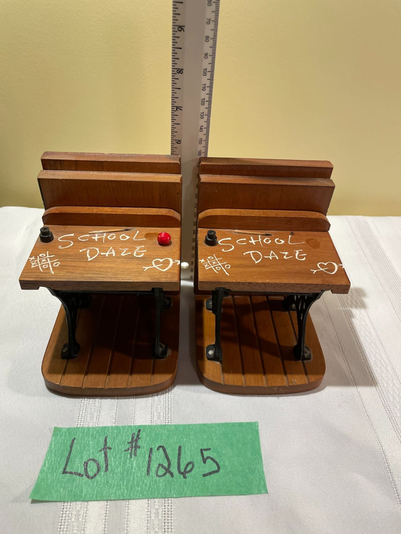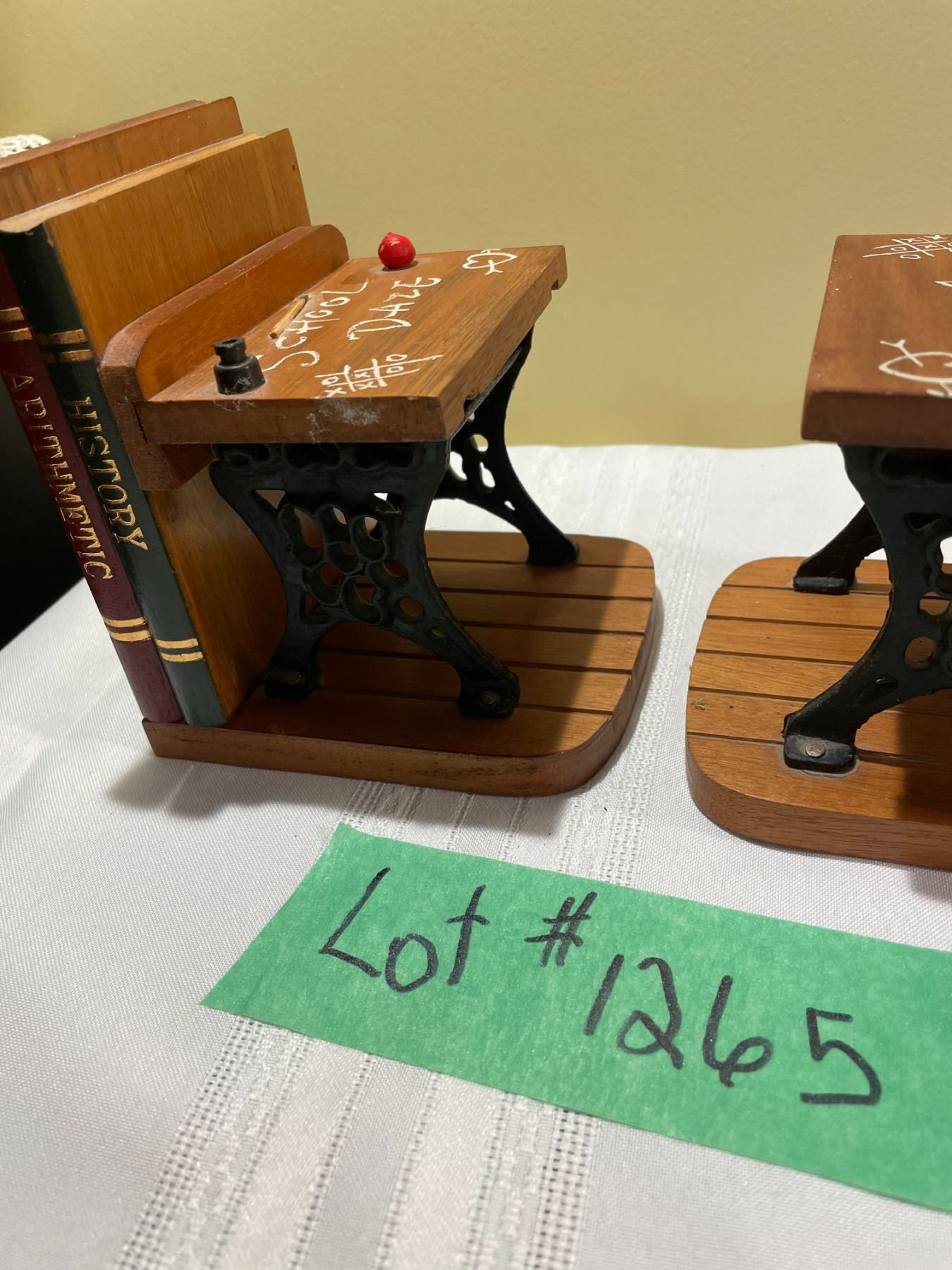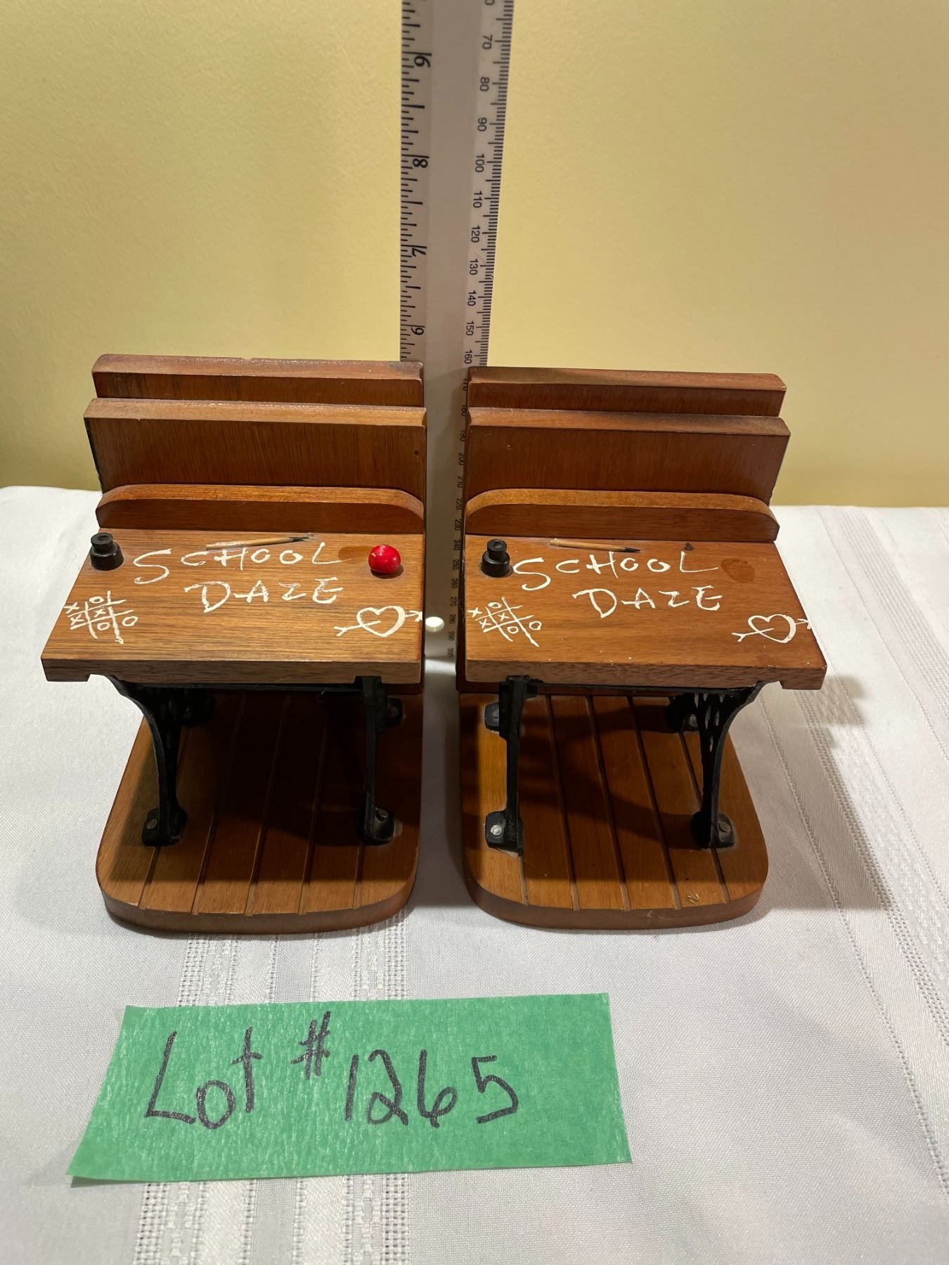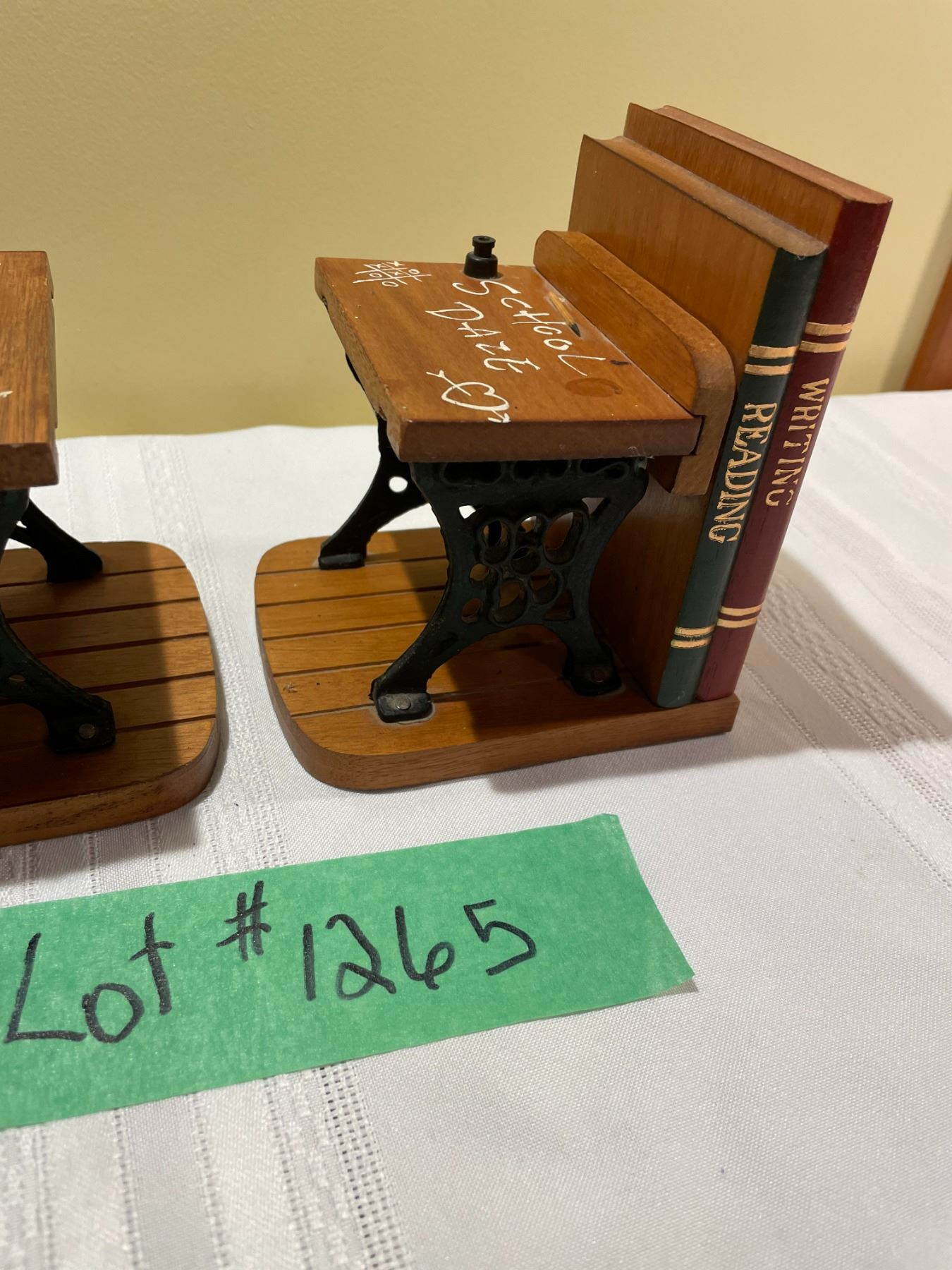 (1) Pair school Daze Bookends - Wood + Metal (1) Pair Wooden Canon Bookends - wood + some metal