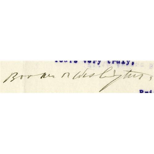 <B>Booker T. Washington Letter Fundraising for His Tuskegee Institute</B></I> Typed Letter Signed, accomplished in purple carbon typescript but signed in ink, 1 page, 8" by 11", on the letterhead of "the Tuskegee Normal and Industrial Institute... For the Training of Colored Young Men and Women" but headed Fifth Avenue Bank, New York, N.Y., no date. To James D. Perkins in New York. As founder of the Tuskegee Institute, the African-American leader sets out to raise money, up north, for his groundbreaking school which in time, would become Tuskegge University. "<I>I am spending some days in the city for the purpose of securing help for the Tuskegee Normal and Industrial institute... We are in need, just now, of money for current expenses and the increasing of our endowment fund. I shall be glad of any help which you can see your way clear to give... Anything sent to the above address will reach me.</B></I>" From the Henry E. Luhrs Collection. Accompanied by LOA from PSA/DNA.