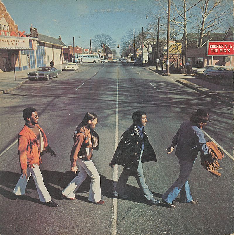 McLemore Avenue album signed on the inside gatefold in blue ink by Booker T. Jones, Donald ‘Duck’ Dunn (ins), Steve Cropper, and Alan Jackson, Jr. In very good condition, with all signatures faded and light due to irregular ink flow and adhesion, but still fairly legible. The record is included. Accompanied by a full letter of authenticity from Roger Epperson/REAL.