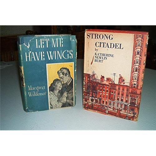 Book one: "Let Me Have Wings", by Margaret Widdemer; Copyright, 1941, Published by Triange Books, 14 West Fourty-nineth Street, N.Y.; Second Book: "Strong Citadel", by Katherine Newlin Burt; copyright: 1949 by Charles Scribner's Sons, N.Y. Third Book: Favorite Stories by Famous Writers: Such as: Louis Bromfield, Fannie Hurst, W. Somerset Maugham, Kathleen Norris, Peter B. Lyne, and Elmer Ranson, (Which was only given to people who had a subscription to the Magazine Cosmopolitan). Copyright 1932: By International Magazine Co., Inc. N.Y. The Fourth book is called "A Man On Her Hands", by David Lowe; Copyright; 1941; Published by Grameray Publishing Co., N.Y. City.