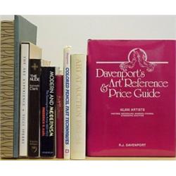 ART AT AUCTION, the Year at Sothebys, 1983-84, published by Sotheby's, hardbound, dust jacket discolored, very good condition; PORTFOLIO EDITION: INTRODUCTOR, CHAPTERS AND ABBREVIATED SPECIES ACCOUNT FROM RAILS OF THE WORLD, a portfolio of forty-one images by T. Fernwick Landsdowne, sheets 14 x 10", a monograph of the Family Rallidae by S. Dillon Ripley, published Smithsonian; THE THAMES AND HUDSON DICTIONARY OF ART TERMS, Lucie-Smith, published Thames and Hudson, hardbound, cover slightly worn, good used condition; THE NUDE, A STUDY IN IDEAL FORM, Clark, published Princeton University Press, softbound, back cover soft crease, very good used condition; THE ART EXPERIENCE, Sperry, published Boston Book and Art Shop, Inc, hardbound, slip case slightly worn, very good condition; DAVENPORT'S ART REFERENCE, 1986, Davenport, hardbound, dust jacket, good used condition; COLOR PENCIL FAST TECHNIQUES, Borgeson, Watson-Guptill Publishing, dedicated in ink, very good condition; Histoire De' Un Art, L' ESTAMPE, Melot, Griffiths, Field, published Skira, text in French, hardbound, slip case slightly worn, very good condition; MODERN AND MODERNISM, THE SOVERIGNTY OF THE ARTIST, 1885-1925, Karl, published Atheneum, New York, softbound, pen & pencil marks inside, used condition. (9) STARTING BID $20. ESTIMATE $20 TO $1000
