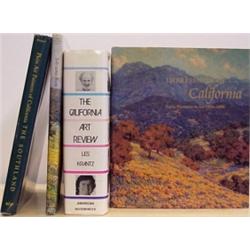 PLEIN AIR PAINTERS OF CALIFORNIA, THE SOUTHLAND, Westphal, Westphal Publishing, hardbound, dust jacket slightly worn, small tears top and bottom, very good used condition; IMPRESSIONS OF CALIFORNIA: EARLY CURRENTS IN ART, 1850-1930, published Irvine Museum, hardbound, very good condition; CALIFORNIA ART REVIEW, Kranitz, hardbound, dust jacket slightly worn, very good used condition; SELECTIONS FROM THE IRVINE MUSEUM, Stern, Blake, Jones, published Irvine Museum, hardbound, very good condition. (4) STARTING BID $20. ESTIMATE $20 TO $1000