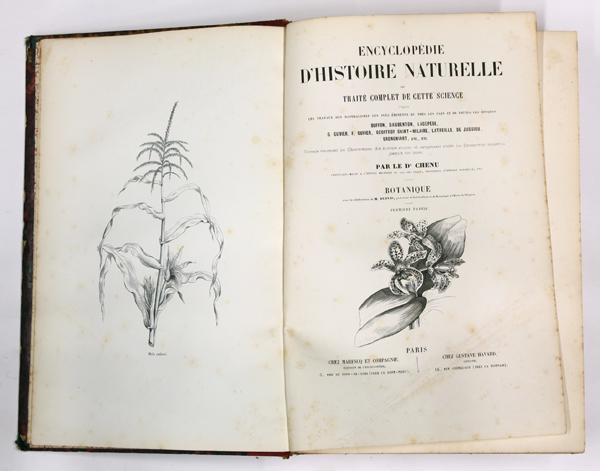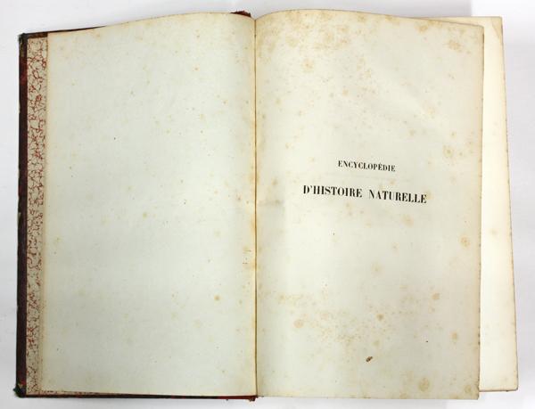 (Lot of 8) Books, eight volumes of Encyclopedie d'Histoire Naturelle, ou traite complet de cette science d'aprŠs les travaux des naturalistes les plus ‚minents de tous les pays et de toutes les ‚poques, Paris, each volume 11.5'' x 8''