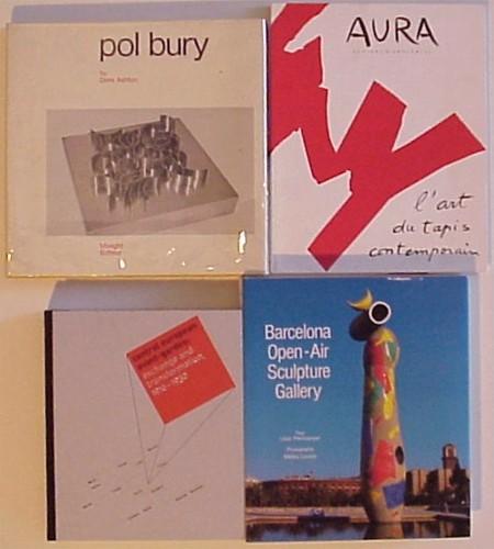 POL BURY, Ashton, Maeght, hardbound with dust jacket very slightly worn, in good condition; AURA CAHIERS D’ARTCURIAL L’ART DU TAPIS CONTEMPORAIN, softbound with dust jacket, good condition; BARCELONA OPEN-AIR SCULPTURE GALLERY, Permanyer; CENTRAL EUROPEAN AVANT-GARDES, O’Benson, three hardbound and one softbound, Barcelona and Avant Garde in very good condition. (4) STARTING BID $20. ESTIMATE $20 TO $1000