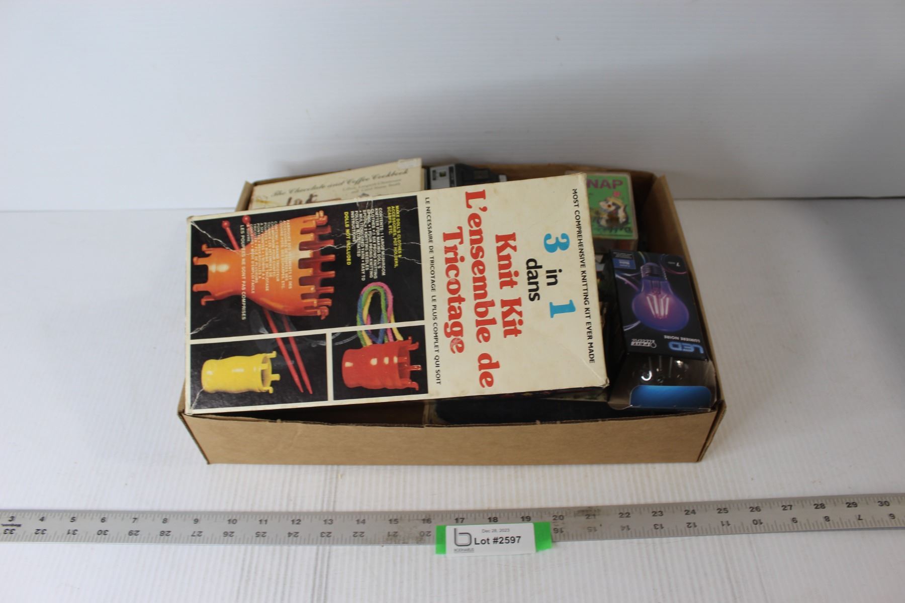 Books, Games, Black Light Bulb, Knitting Kit, Panasonic Cassette Tape Recorder