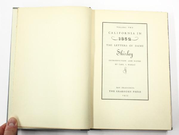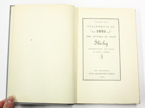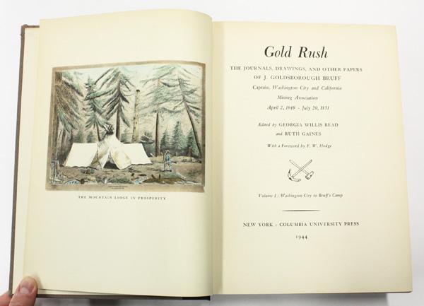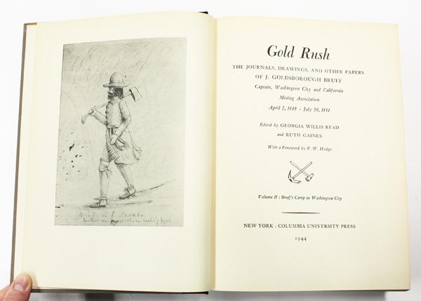 (lot of 6) Books, relating to the history of California, including two volumes Gold Rush, Journals and Drawings of J.G. Bruff, edited by Georgia Willis Read and Ruth Gaines, with a forward by F.W. Hodge, New York, Columbia Press, two volumes the Shirley Letters, the letters of Dame Shirley, introduction and notes by Carl I. Wheat, San Francisco, The Grabhorn Press, John Marsh, Pioneer, The Life story of a Trail-blazer on Six frontiers, George D. Lyman, New york, Charles Scribner's Sons, 1930, with original slip case, and Dr. John Marsh Wilderness Scout, Dr. John W. Winkley, M.A., D.D., Contra Costa Historical Society, The Parthenon Press, Nashville, Tennessee