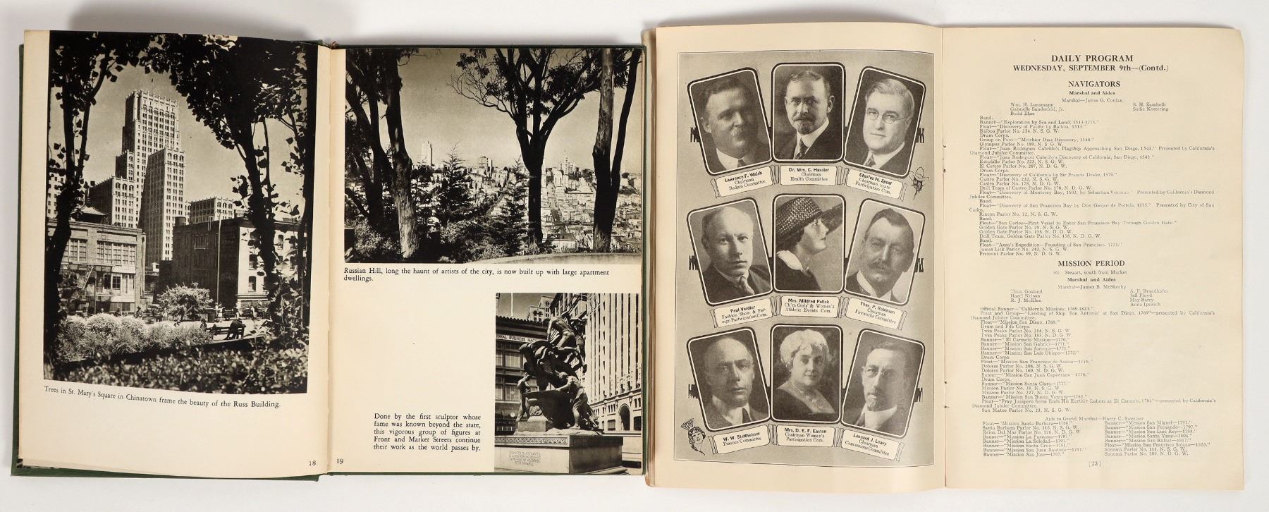 Lot of 2. 1. Official Program of the 1925 Calif. Diamond Jubilee of schedules and photos. 2. San Francisco Bay Cities, by Josef Muench, Hastings house publisher. Hardbound 1947, 101 pgs. w/photos. Pictorial tour of the Bay Area cities. Excellent cond.