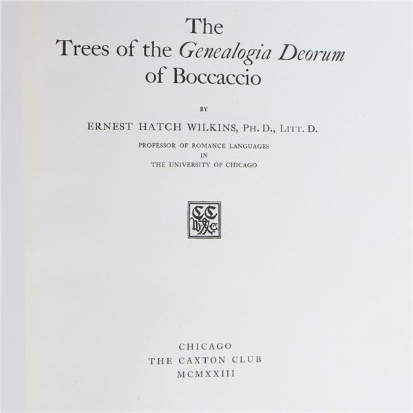 1. [CAXTON CLUB.] WILKINS, ERNEST HATCH. The Trees of the Genealogia Deorum of Boccaccio. Chicago: The Caxton Club, 1923. 4to. 1 of an edition