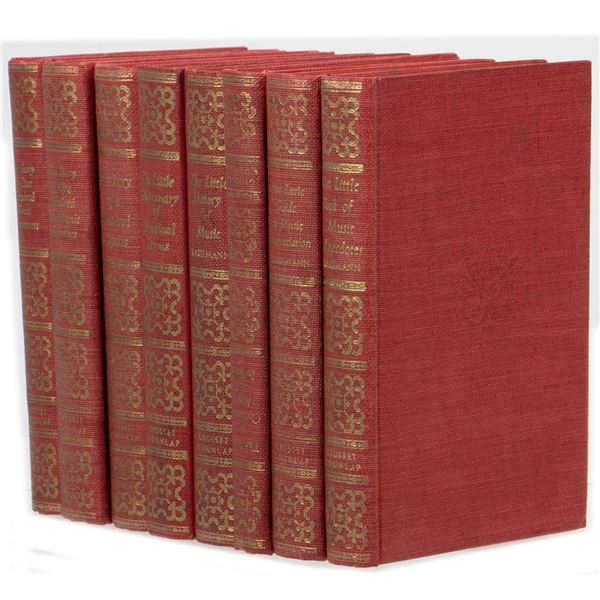 Collection of eight small (5 1/4" x 3 5/8") volumes on music and opera, uniform red cloth with gilt spines, a few with line illustrations;...
