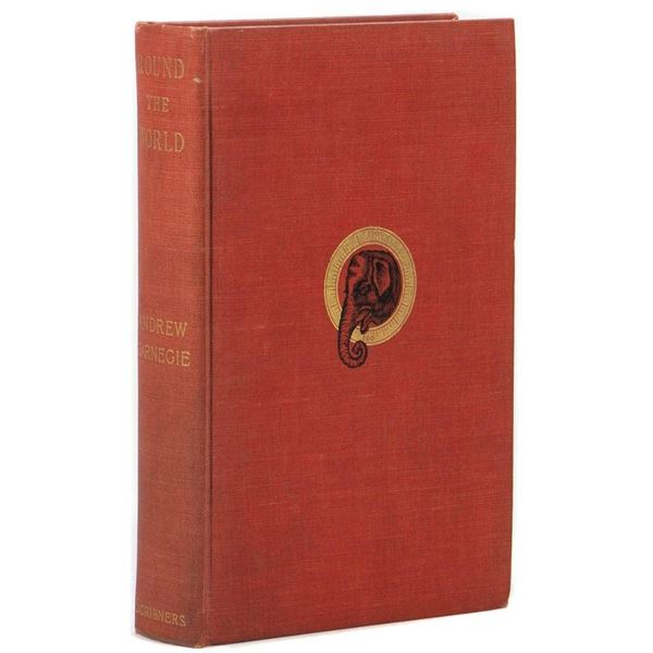 CARNEGIE, ANDREW. Round the World. New York: Charles Scribner's Sons, 1908. 12mo (7 1/2" x 5 1/4"). Red cloth with black-stamped eleph...