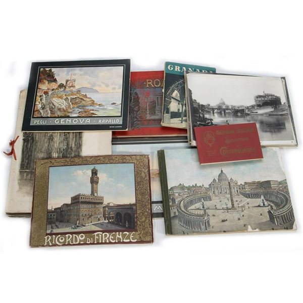 An assortment of seven illustrated souvenir booklets on Rome (including a fold-out historic panorama), Genoa, Florence, Milan, and Grenada, together w