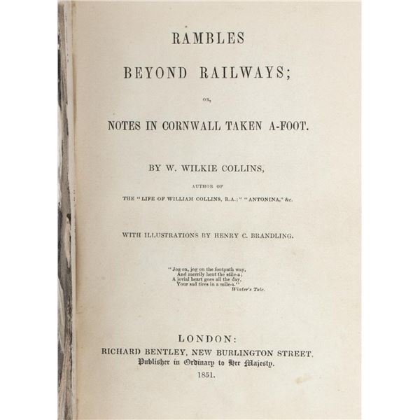 COLLINS, W. WILKIE. Rambles Beyond Railways; or, Notes in Cornwall Taken A-Foot. With illustrations by Henry Brandling. London: Richard Bentle