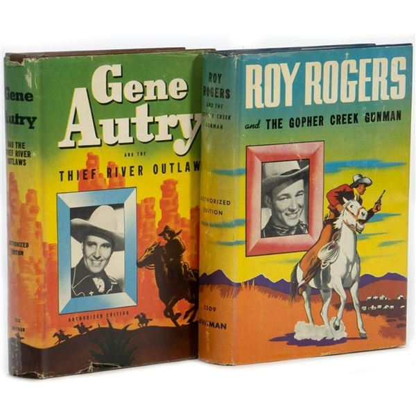 Two Hollywood western star tie-in novels with photo-illustrated dust jackets: 1. HAMILTON, BOB. Gene Autry and the Thief River Outlaws: An original st