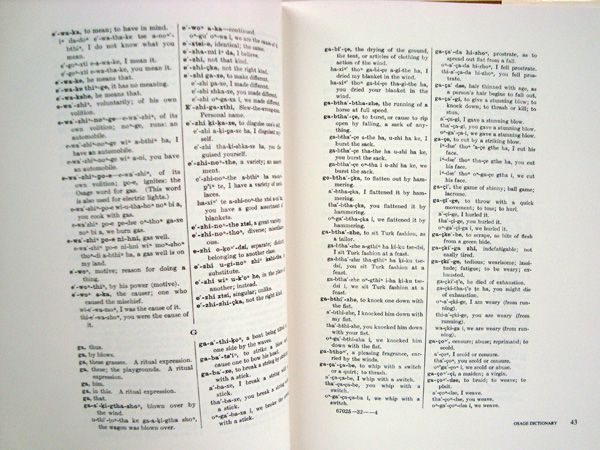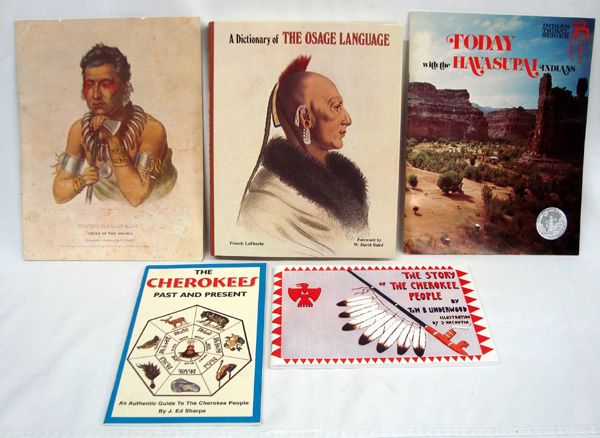 5 Books on Indian Life and History. There are 4 softback pamphlets and one hardback book in this group. The hardback is ''A Dictionary of the Osage Language'' by Franci LaFlesche. It is 406 pages and is in very good condition. It measures 10.25'' x 8.25''. The pamphlets are: The Cherokees Past and Present; The Story of the Cherokee People; and two editions of The Indian Tribal Series - ''Today With the Havasupai Indians'' and a 1976 edition on M'Kenney-Hall Portfollios of Indian portraits and Eskimo Country.