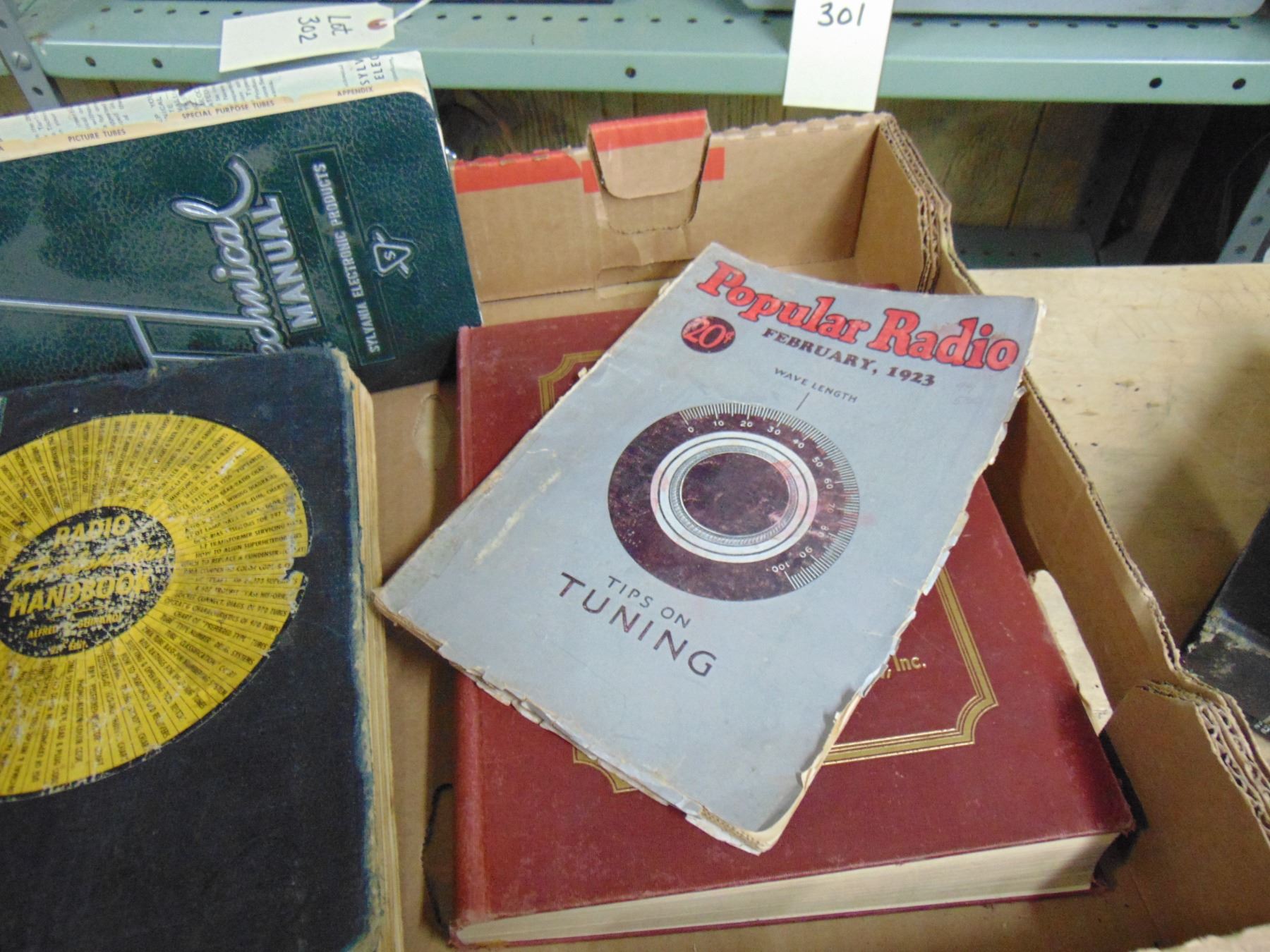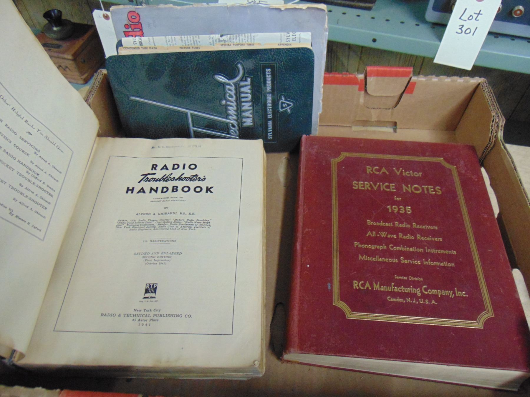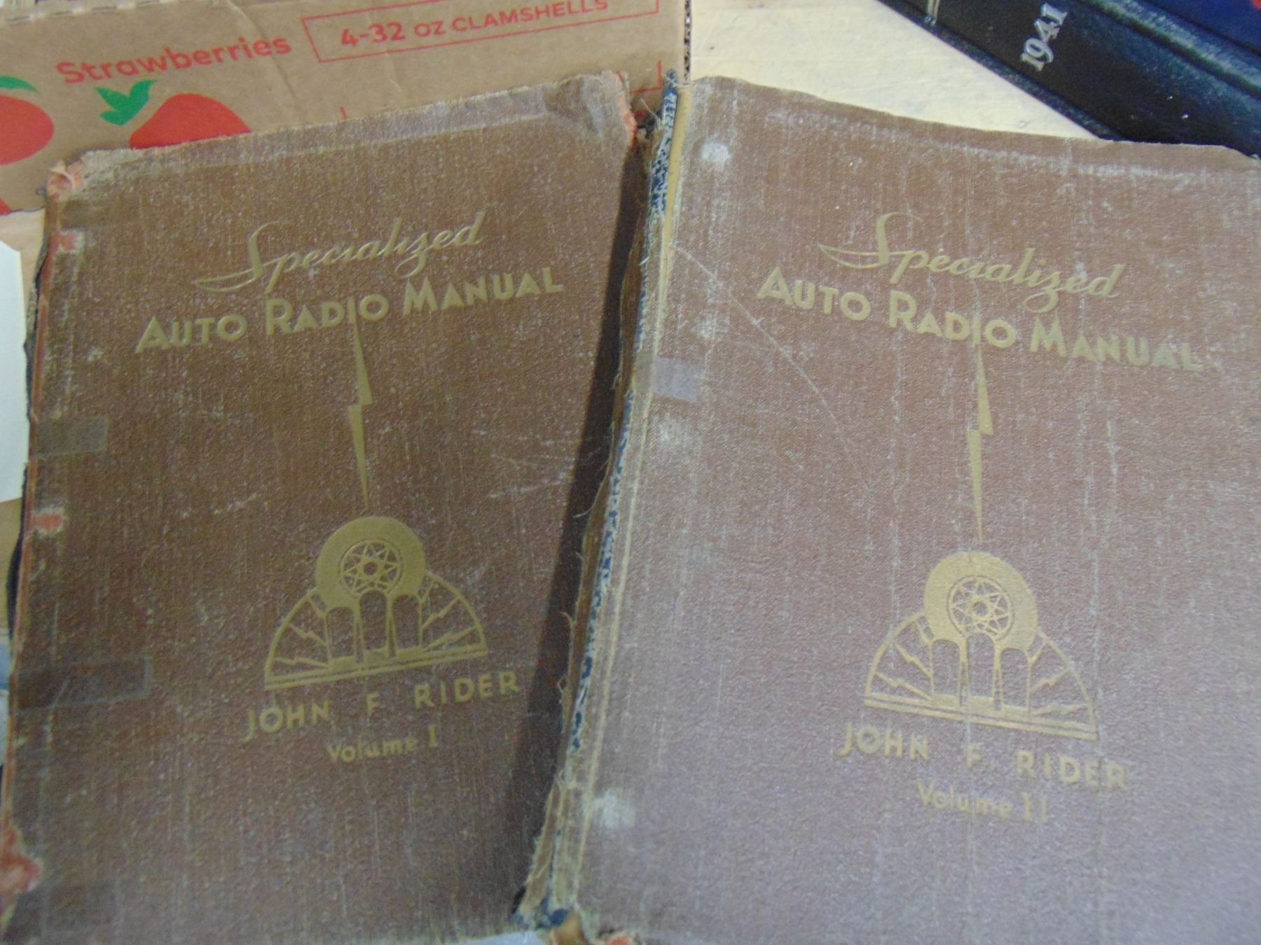 Flat of books; including vintage home and car radio service manuals