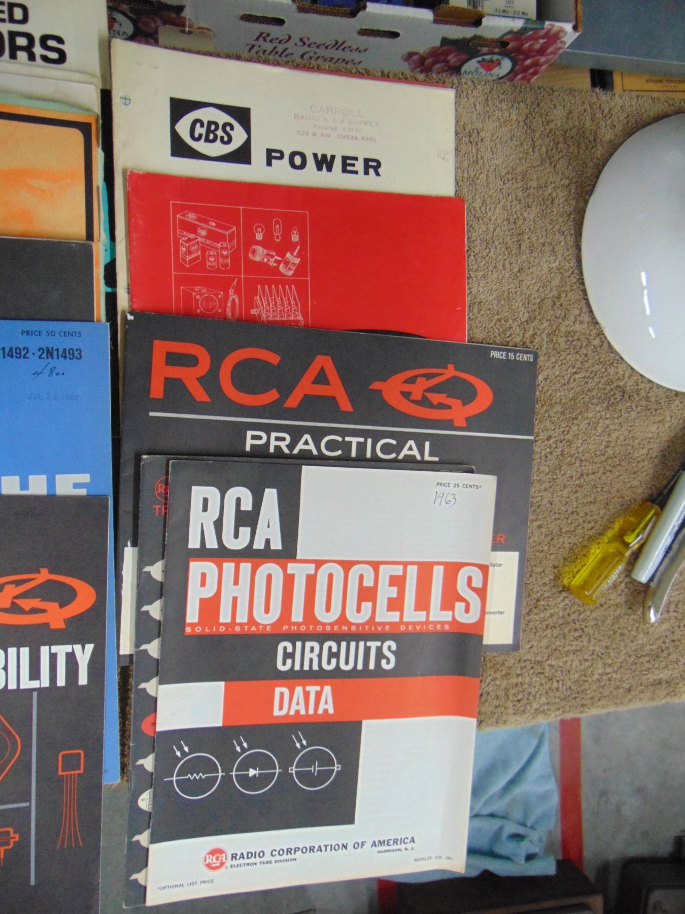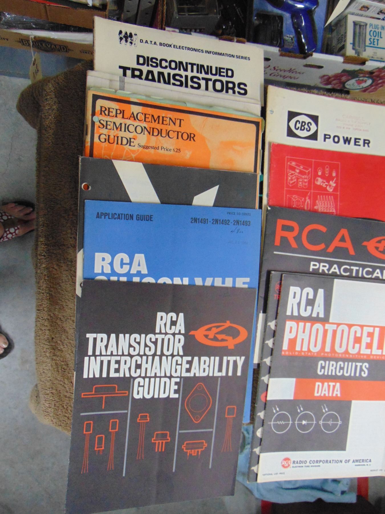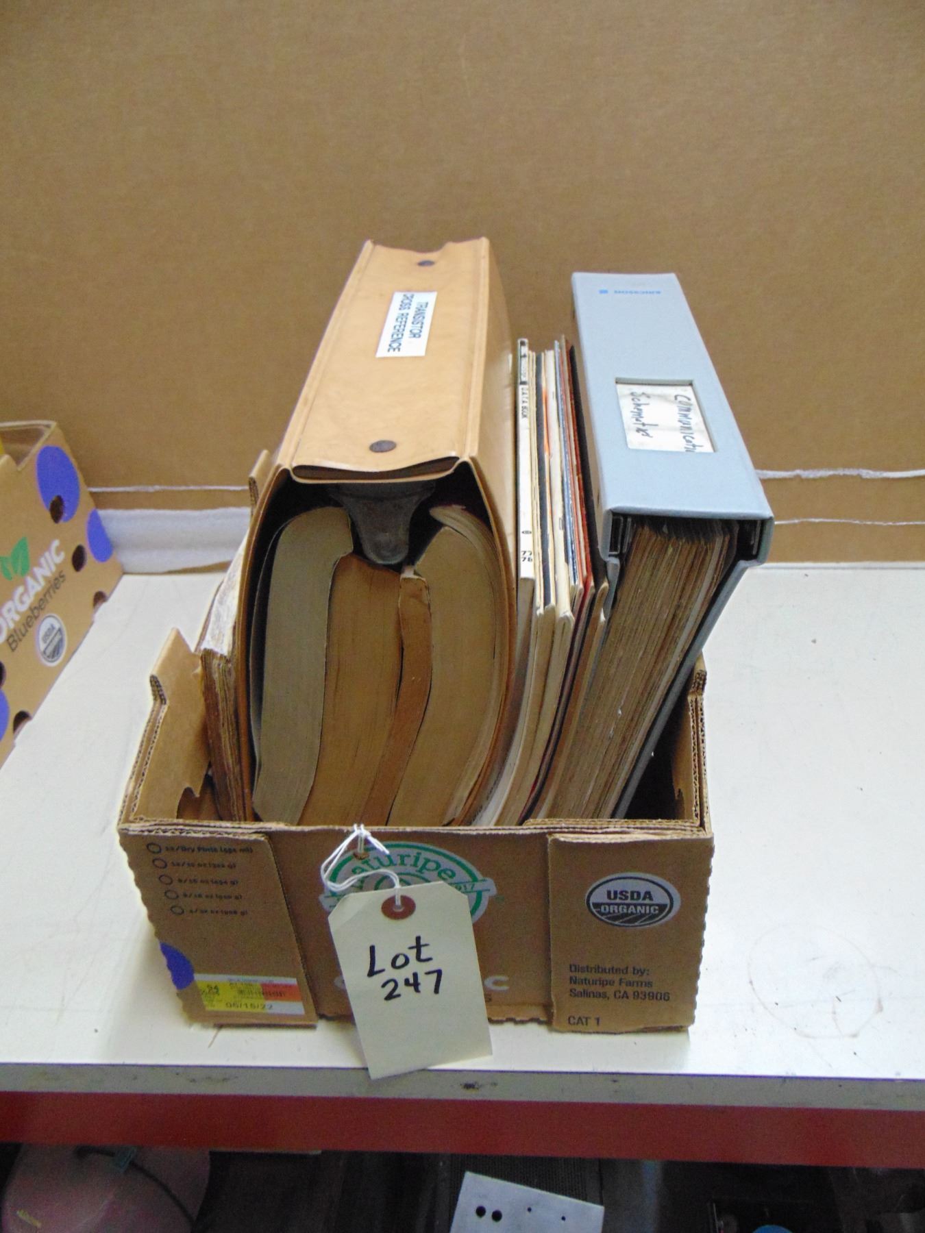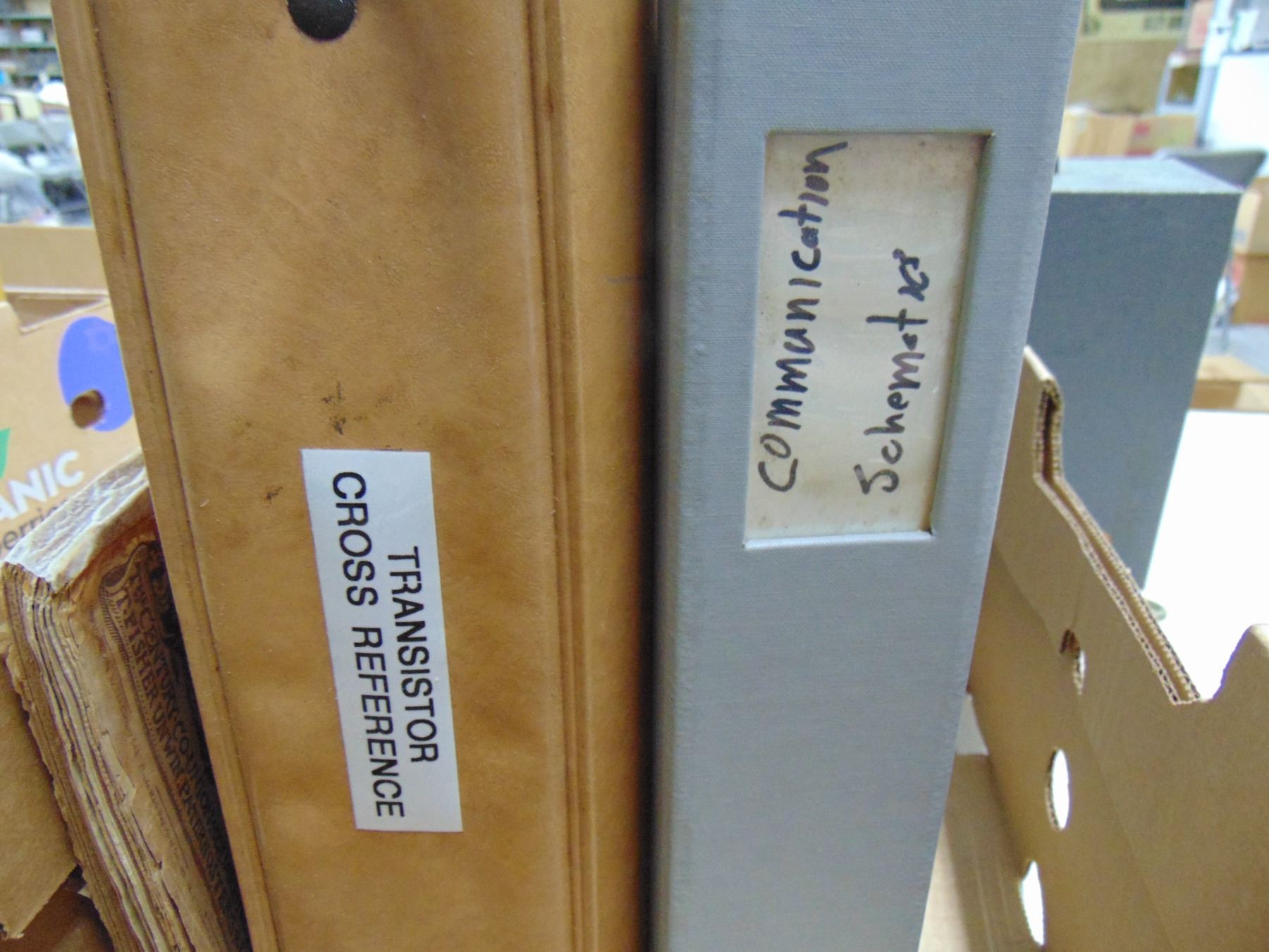 Flat of vintage transistor manuals and brochures; also large binder full of original and Sam's folder schematics for various Hallicrafters receivers.
