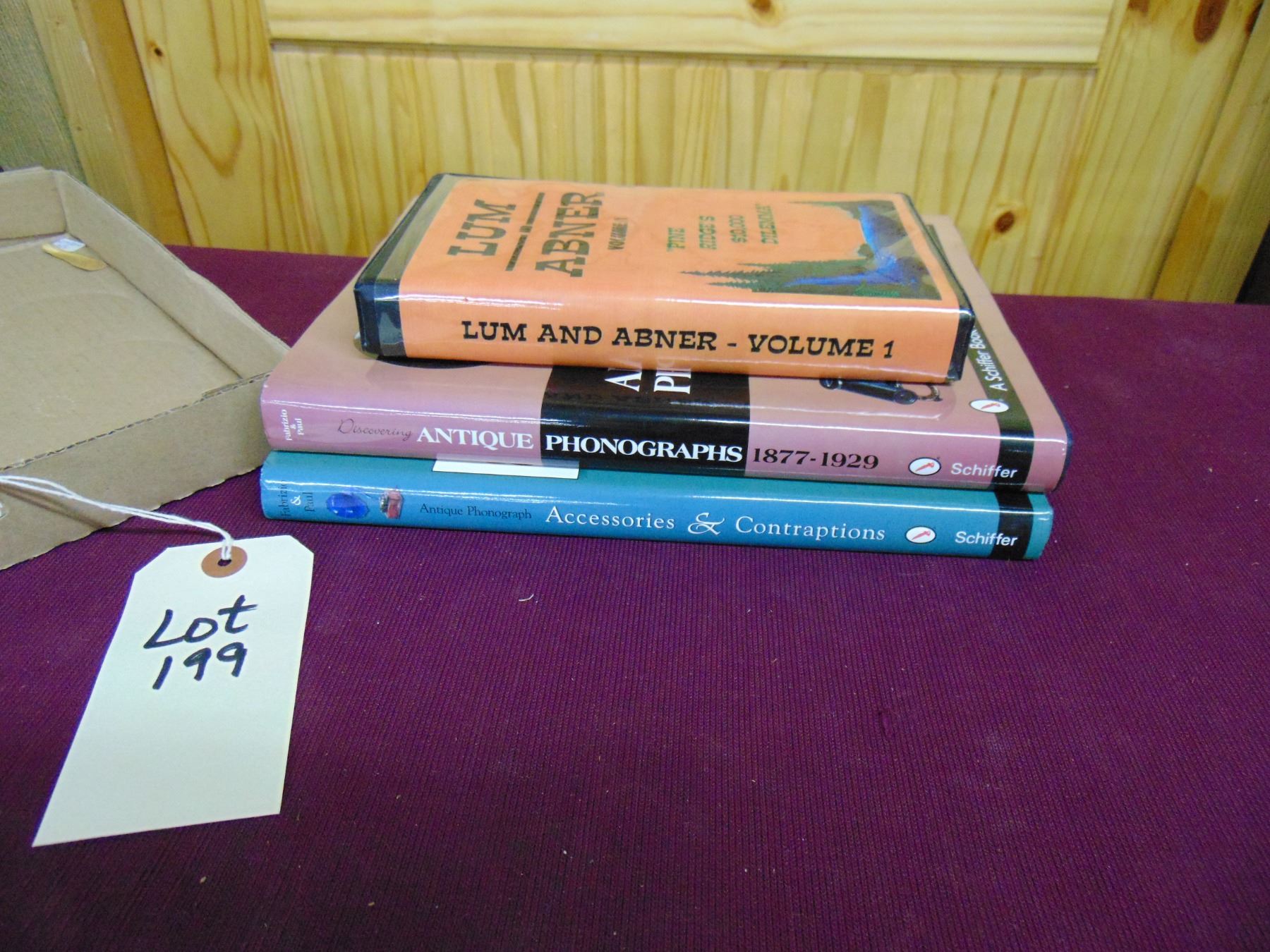 Flat of 2 coffee table books on vintage phonographs, excellent; ALSO, Lum and Abner radio programs on cassettes