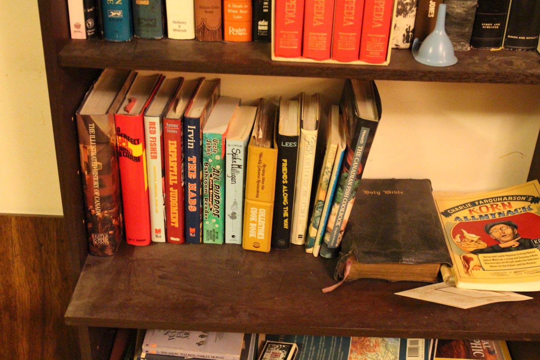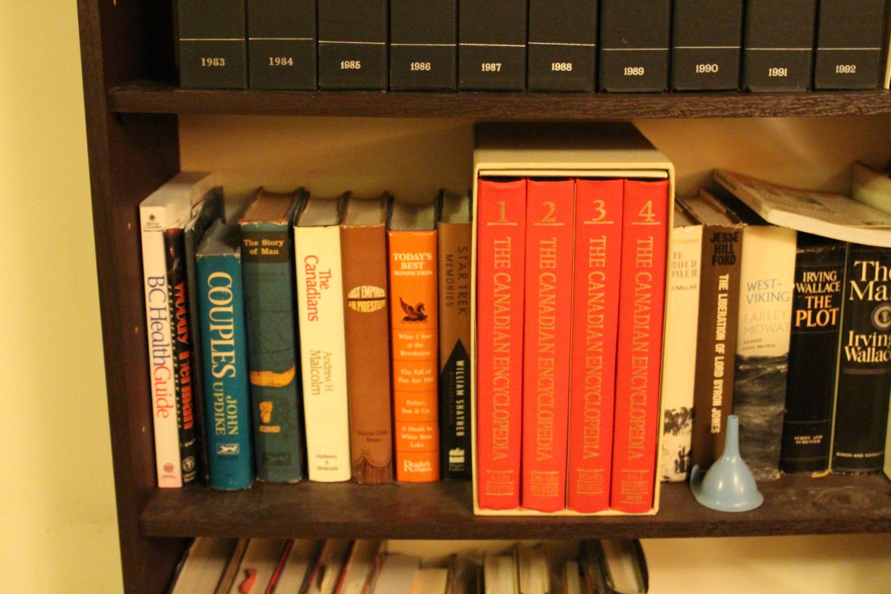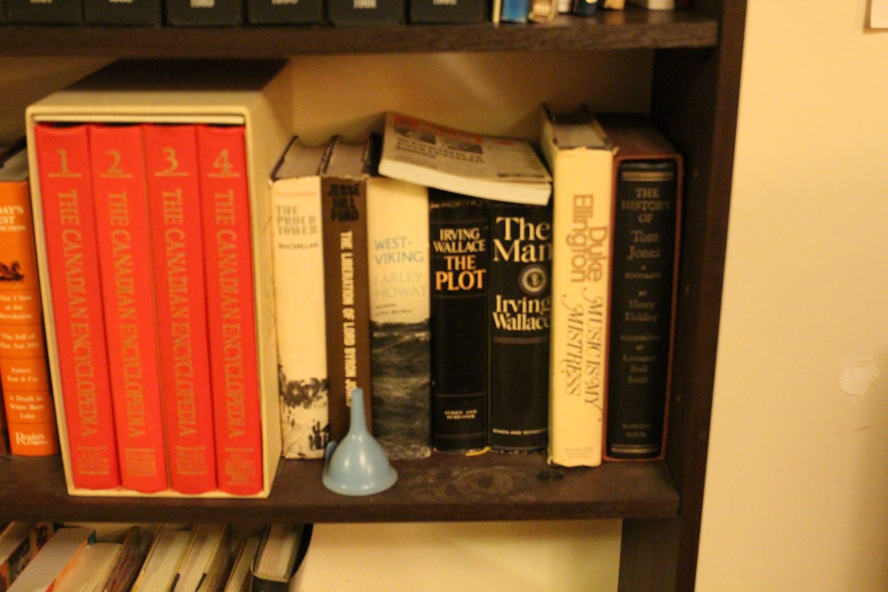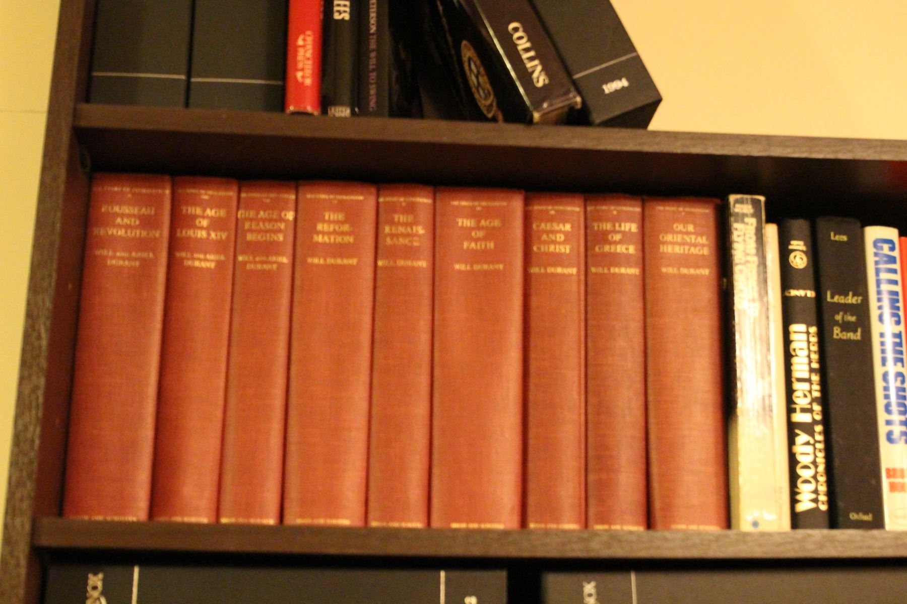 Wood bookshelf 30X10X78 note scratches & bring tools to dismantle from wall. Includes books Will & Ariel Durant's Story of Civilization 9 volumes, Equinox magazines & more. Heavy bring help to remove from home & packing materials. Pickup 10:00 - 11:00 am