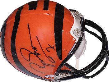 Following his final year at Maryland, Boomer Esiason was selected by the Cincinnati Bengals in the second round of the 1984 NFL Draft with the 38th overall pick. At his retirement in 1997 he was among the most successful quarterbacks in NFL history, finishing in the top 10 in many statistical categories. Boomer got his first pro start on October 7, 1984, in Cincinnati in a game against the Houston Oilers. Esiason won the 1988 NFL MVP award and was named to the Pro BowlBoomer Esiason has hand signed this Cincinnati Bengals Mini Helmet #7. JSA Hologram and Certificate of Authenticity.