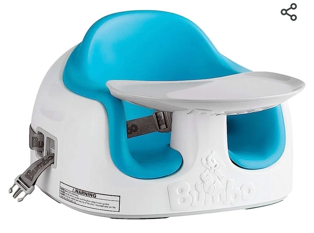 Bumbo Baby Adjustable 3-in-1 Non-Slip Booster Seat With Tray, Powder Blue, Open Box, Like New Condition