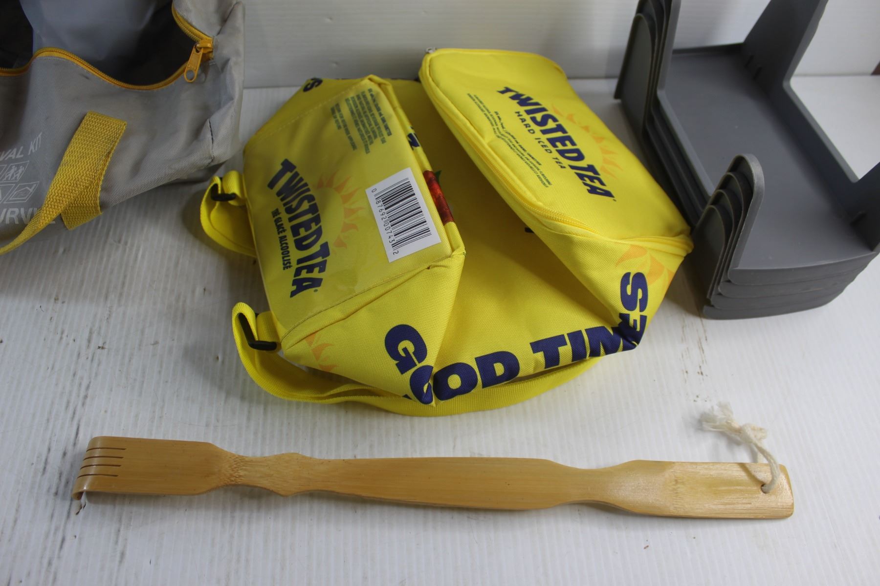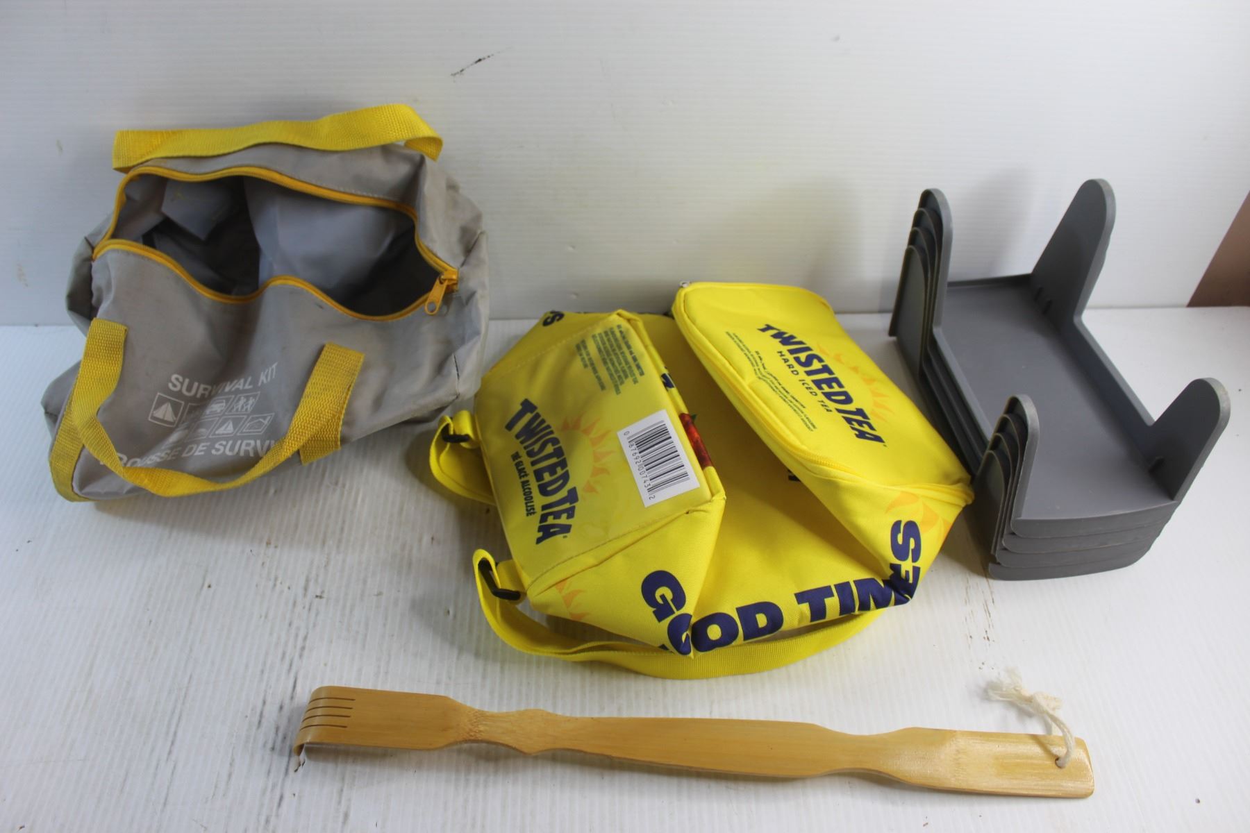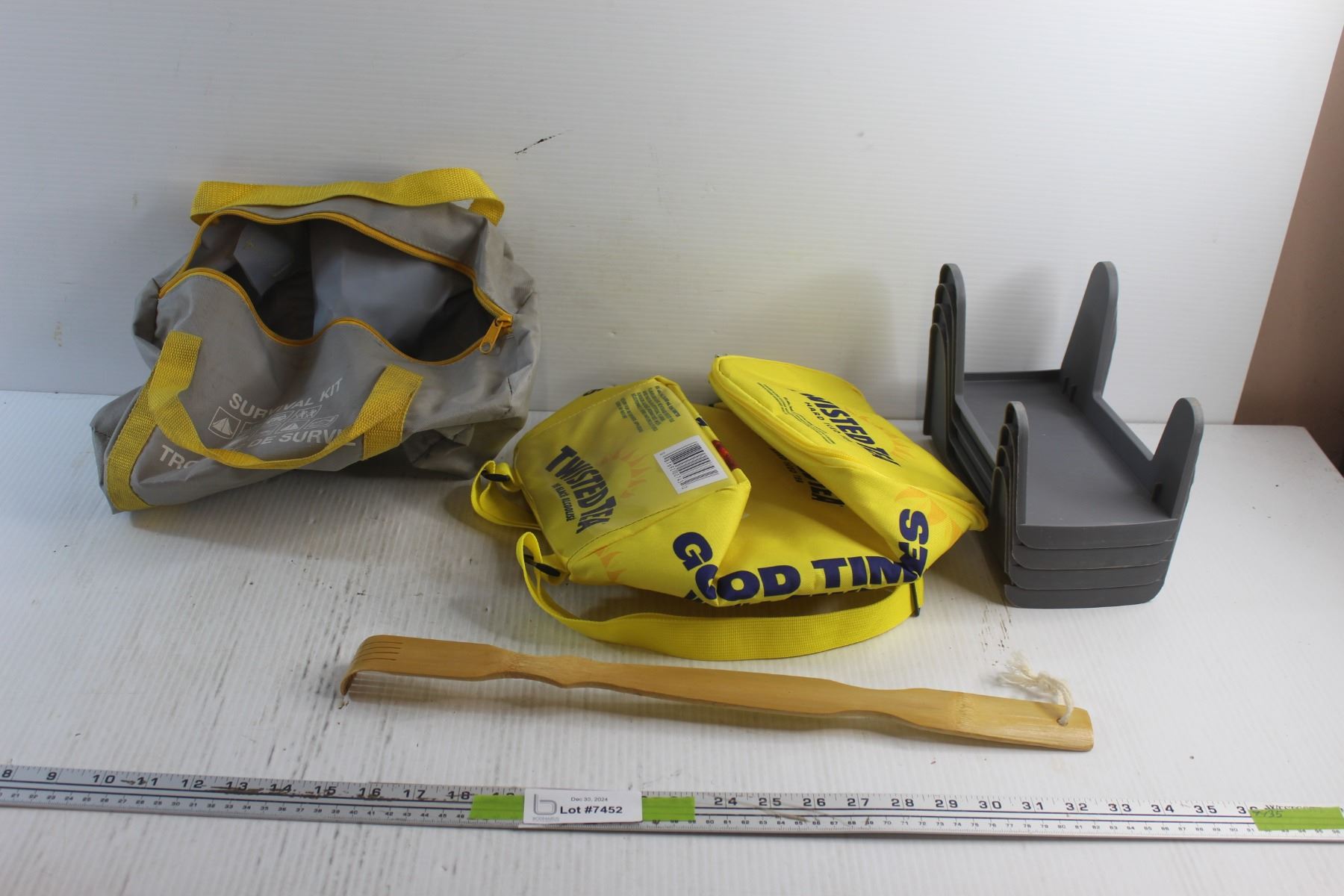 Boot Rests, Back Scratcher, Survival Kit and Cooler Bags