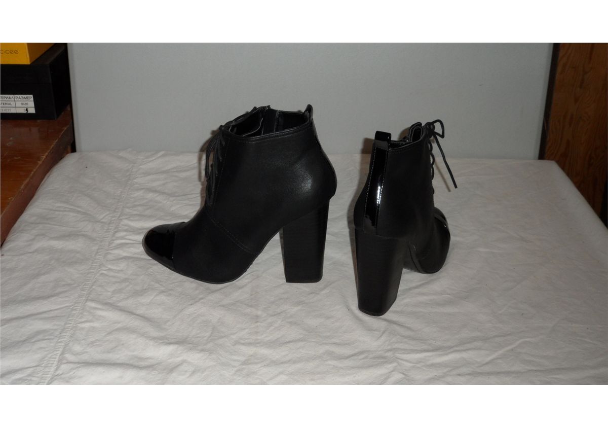Lace Up Boot 3.5" heel Black Size 40