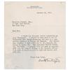TLS, one page, 5.75 x 6.25, Seawood letterhead, October 29, 1919. A brief reply to Theodore Findahl. In part: “I thank you for your letter concerning my play ‘Clarence.’ I should be very glad to see it translated into Danish-Norwegian and sent to a theatrical producer in Norway and Denmark. For authority, however, I must refer you to its manager, Mr. George C. Tyler, The New Amsterdam Theatre Building, New York.” In very good condition, with mild creasing, intersecting folds, and show-through from mounting remnants in the lower left quadrant.