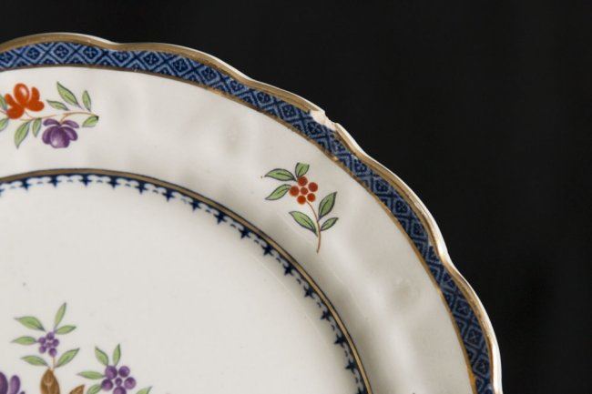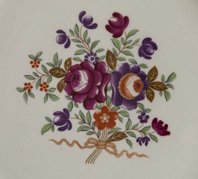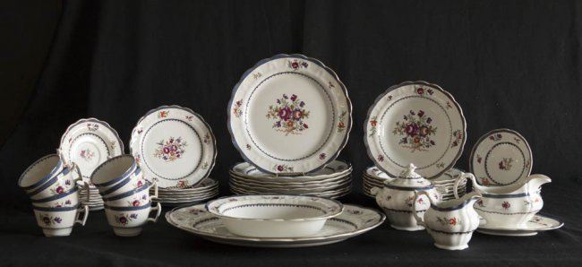 8 dinner plates, 8 luncheon plates, 8 cake plates, 8 saucers, 8 cups, 1 oval platter, gravy boat, oval serving bowl, covered sugar bowl, and creamer.