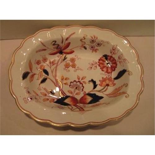 This fantastic Ironstone Oval Bowl is decorated with the lovely Fresian Pattern which has strong burnt umbers and cobalt blue colors. This bowl is in SUPERIOR condition with no chips, cracks, dings or hairlines and it measures 7" wide and is 9" long and stands about 1.50" tall. It is marked on the back with the familiar Booths logo.