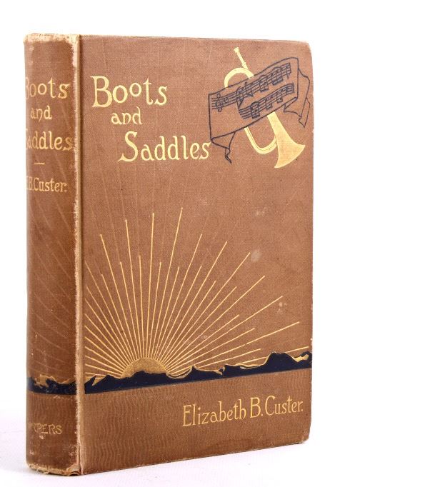 For your consideration is this first edition of "Boots and Saddles or Life in Dakota with General Custer" written by Elizabeth B. Custer and published in 1885 by Harper & Brothers, Franklin Square. The book was written in dedication to her late husband, General George Armstrong Custer, and chronicles their life together in the Dakotas until his untimely death at the hands of Indians at the Battle of the Little Bighorn in 1876. The appendix of the book includes numerous extracts of letters from General Custer, including many from just prior to the battle of the Little Bighorn. The book has a sticker on the inside cover indicating it had been in a public library in Oceola, Iowa, however it has no other extra markings in it, library or otherwise. It is in very good condition; it measures 5.25" x 7.5".
