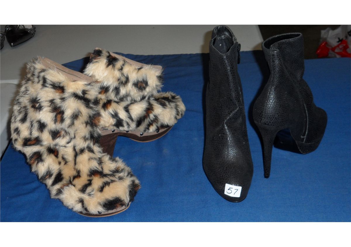 Leather Boots 5" heel Black Size 38 / Pile Lined Boot 2" heel Animal Print Size 38