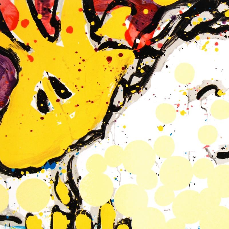 Master Artist Tom Everhart is the protege of famed "Peanuts" creator, Charles M. Schulz (1922-2000). As the only artist in the world granted the rights to draw the "Peanuts" characters in his own work, Everhart creates vibrant, extremely collectible rainbow masterpieces featuring Snoopy, Woodstock and the gang. "Bora Bora Boogie Bored" is a limited edition hand pulled original lithograph on museum quality deckle-edge paper, numbered and hand signed by Everhart! Includes certificate of authenticity! Measures approx. 35" x 28" (with border); 31" x 23" (image). This artwork was created on one of two rare antique Marinoni Voirin lithograph presses that date back to the 1800's, and are reputed to come from the Paris print shop used by Henri Toulouse-Lautrec. There are only 7 of these magnificent beasts left in the world: the smaller one (with a print bed size of 25" x 35"), weighs 9 tons, and the larger one weighs in at 11 tons (print bed size 31" x 47"). The significance of this is that the lithographs produced by this method are of the finest quality, using techniques that are so labor and time intensive that very few master printers know how to operate and care for these presses today. Each lithograph is created with hand-mixed colors applied one at a time - a highly trained and synchronized team must hand feed each museum-quality sheet of paper through the press numerous times in order to set the colors and impressions, while the Chromist - a trained color specialist - adjusts each color by look and feel to match the original artwork, as if mixing a potion. The result is an image with maximum pigment saturation, formed through rich layers of color that imbue the artwork with a permanency of brilliance - proven over centuries to last. In contrast, today's printers use a method more akin to a dot matrix style application, with the colors all premixed and sprayed onto a sheet in a uniform layer, resulting in a much less saturated image that is susceptible to fading and imperfect color reproduction. This is one of the final Tom Everhart editions to be printed using this very special technique.