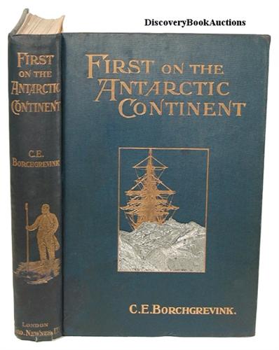 Borchgrevink, C. E. FIRST ON THE ANTARCTIC CONTINENT. BEING AN ACCOUNT OF THE BRITISH ANTARCTIC EXPEDITION 1898-1900. London: George Newnes 1901 xv,333pp. Frontis port, many photo illus, 3 folded maps. Original dark blue cloth, t.e.g. Lettered in gilt on front & spine, with gilt & silver ship in ice on front. New endpapers to match. A very good, bright & clean copy
