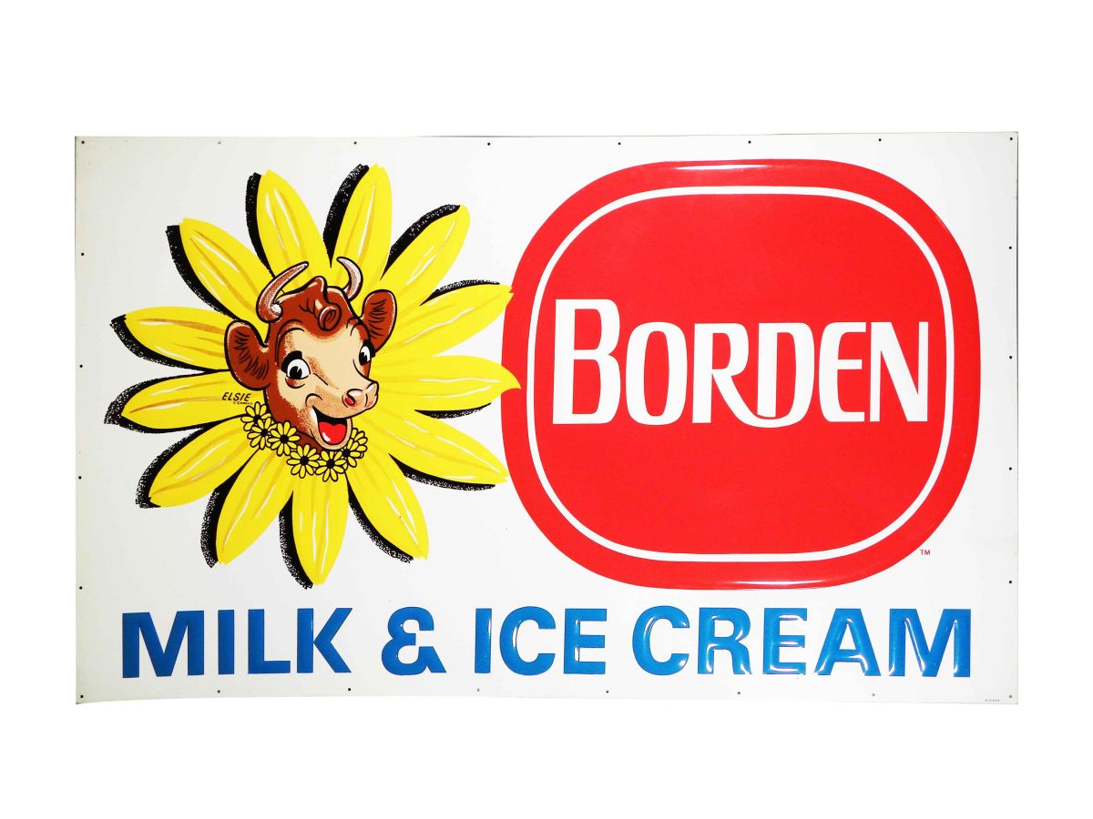 Borden's Milk and Ice Cream Embossed Tin Sign. Excellent condition. 70 X 40 inches.