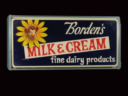 Electric store display sign for Bordens Fine Dairy Products Milk and Ice Cream, 12 inches x 26 inches, very good condition.