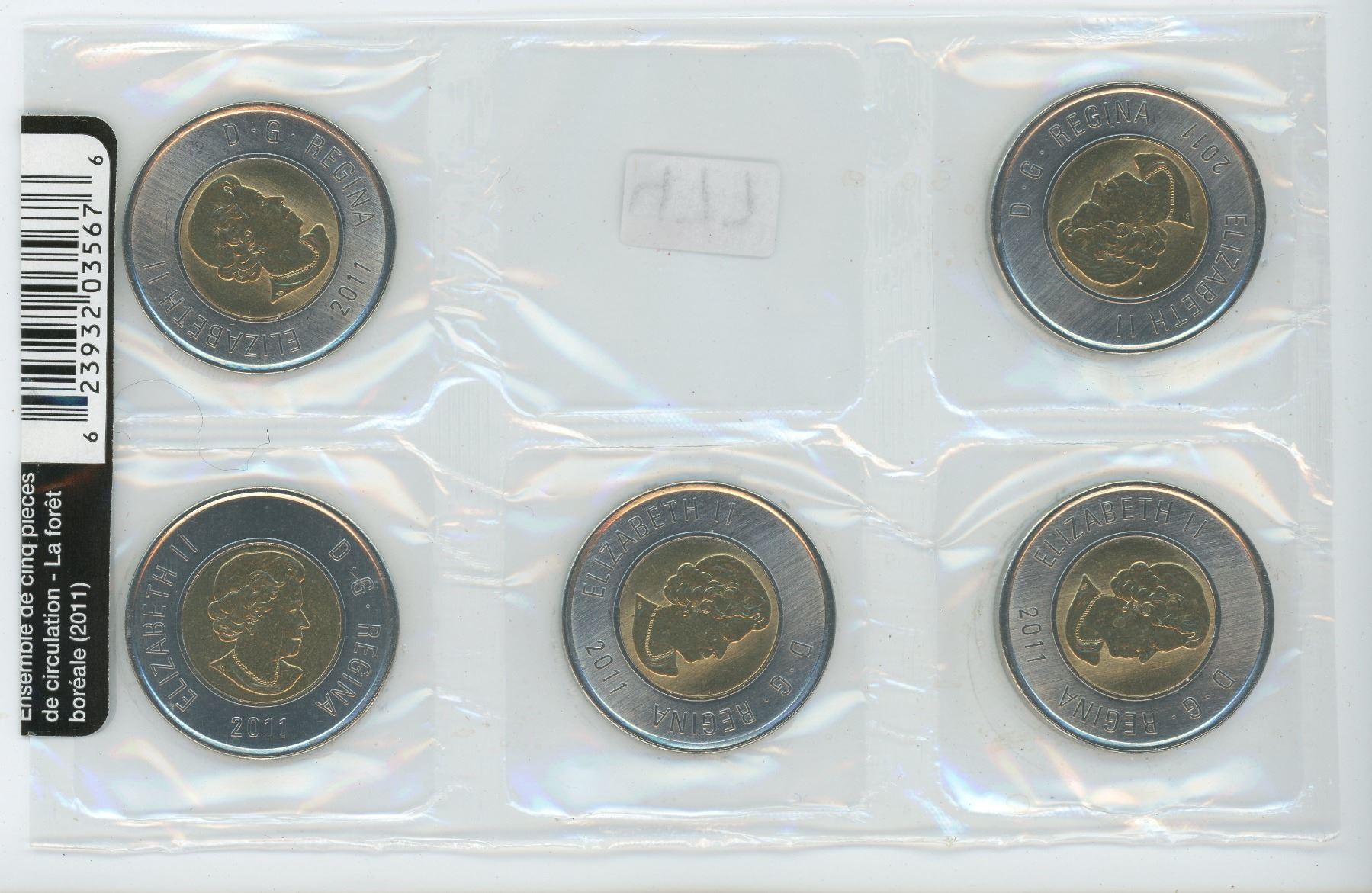Boreal Forest $2 Circulation Coin 5-Pack 2011,5-canadian dollars