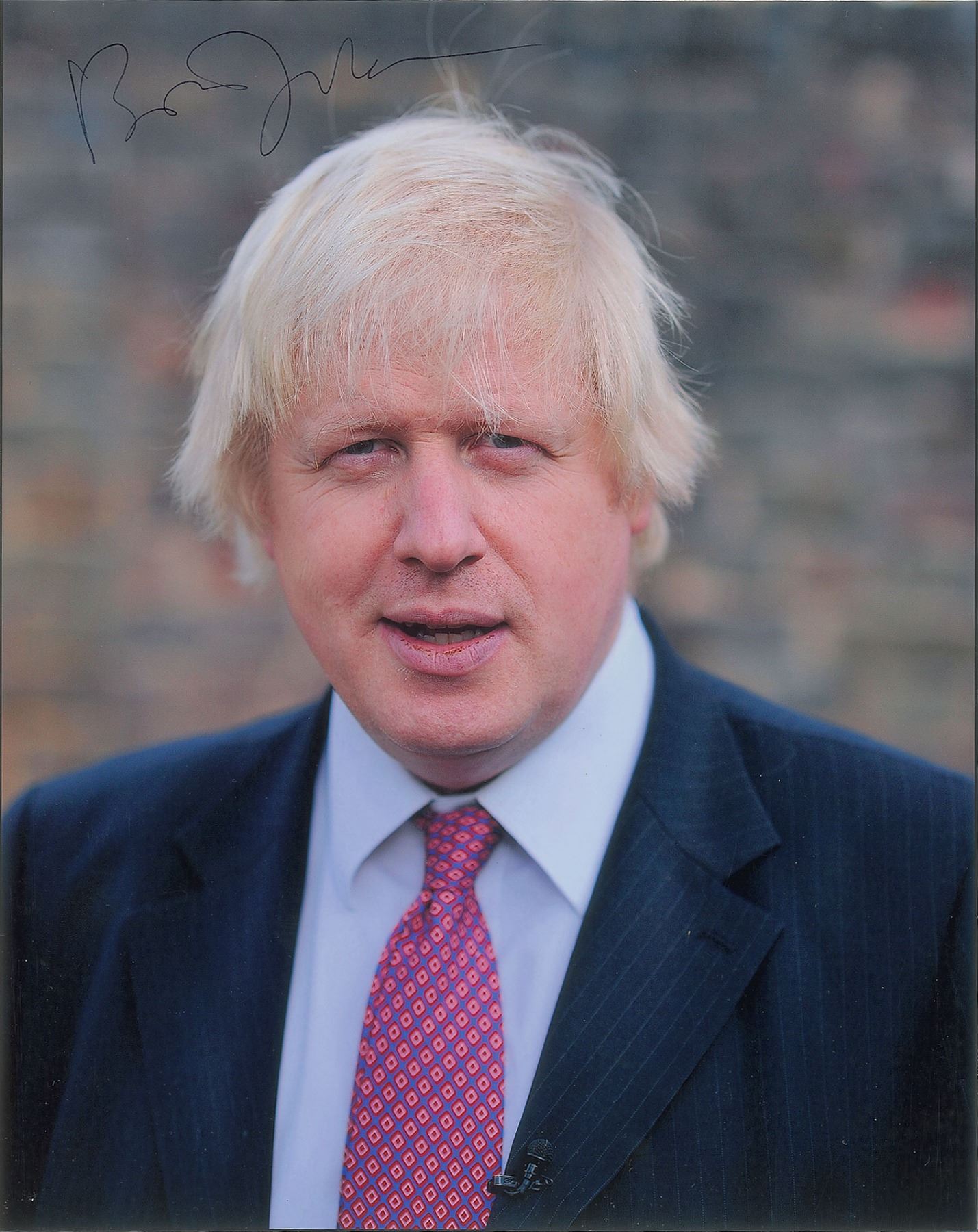 Color glossy 8 x 10 close-up photo of the recently elected Prime Minister of the United Kingdom, signed in black ink by Boris Johnson. In fine condition. Accompanied by a letter of transmittal affirming that Johnson signed the photo while mayor of London.