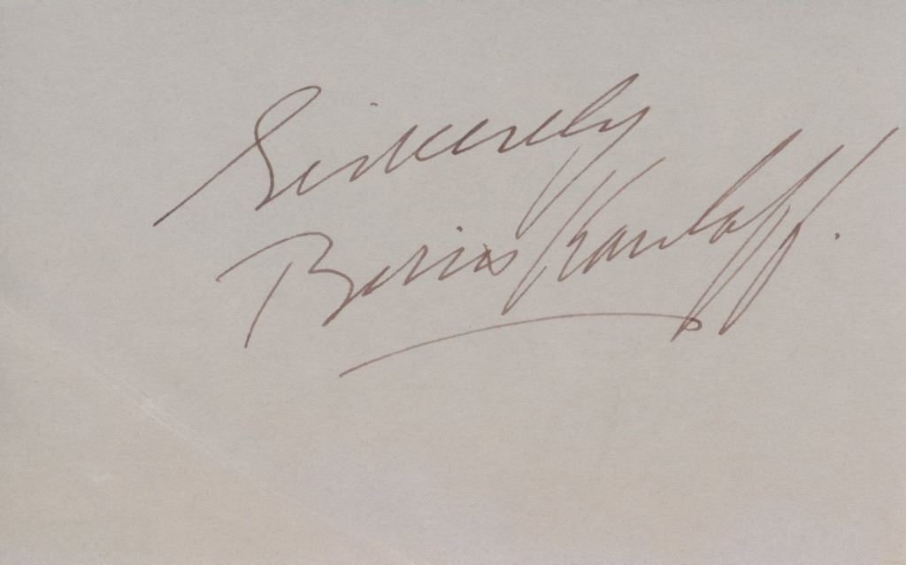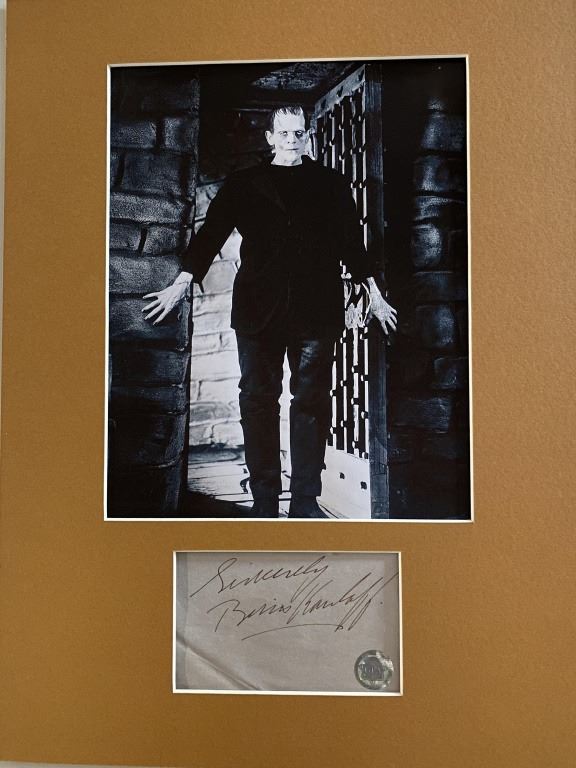 Boris Karloff signature cut in custom matte. 16x20 inches. GFA Authenticated. (Cut038)
