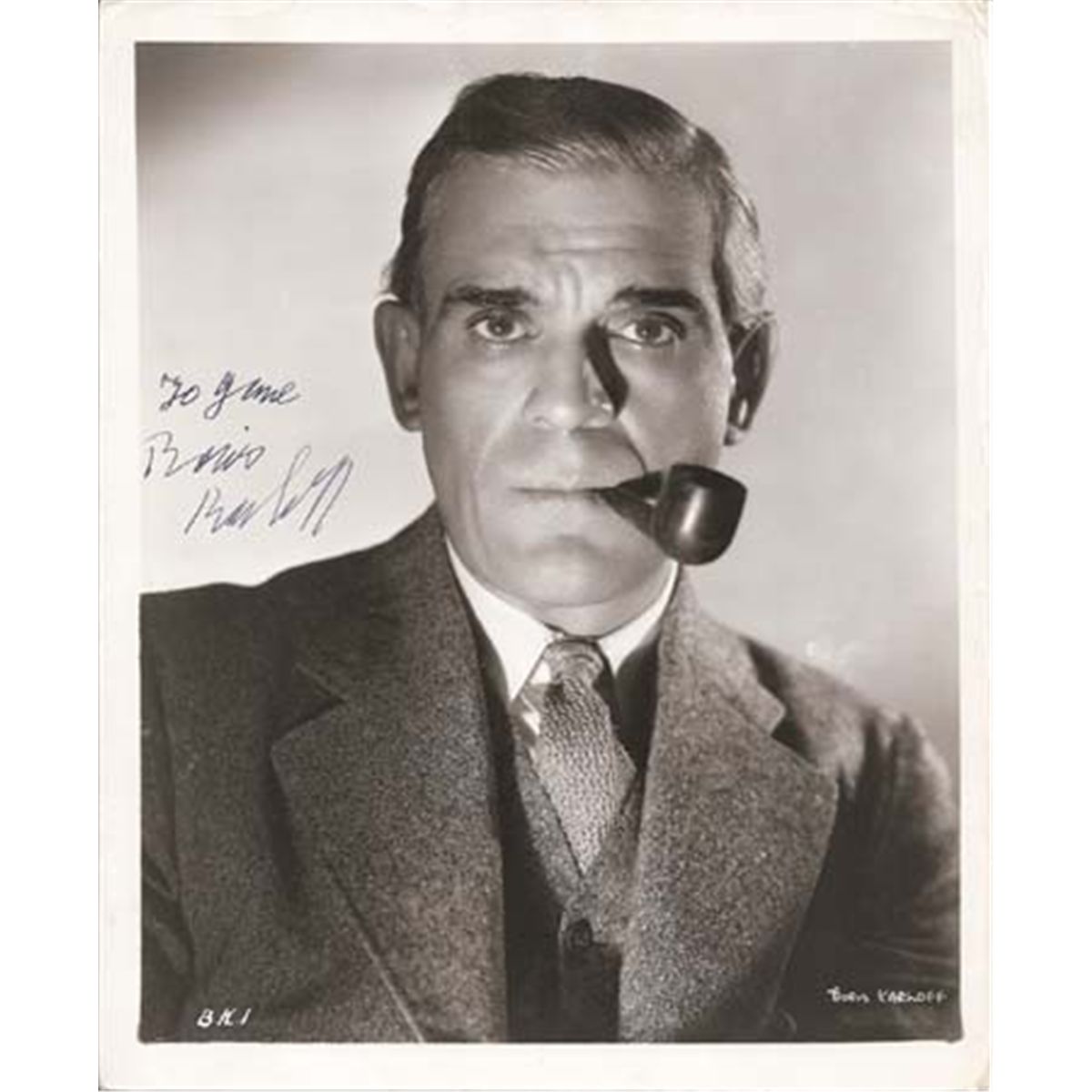 Boris Karloff Signed 8'' x 10'' Photo -- Black & White Glossy Portrait Circa 1940 Signed in Blue Ink ''To Gene / Boris / Karloff'' -- Near Fine