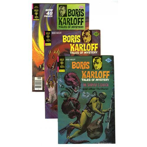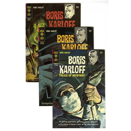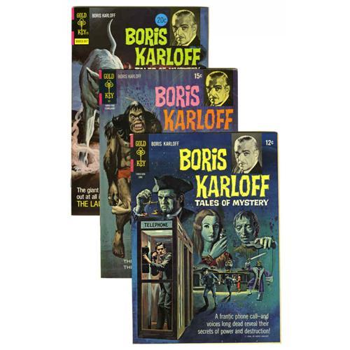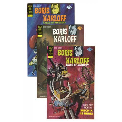 <B>Boris Karloff Tales of Mystery Box Lot (Gold Key, 1965-78) Condition: Average VF.</B></I> Originally spun off from the TV show "Thriller" hosted by Karloff, this popular comic book series not only outlasted the show, it survived the actor by nearly a full decade. The two full short boxes featured here include multiple copies of <B>Boris Karloff</B></I> #13-20, 23, 24, 25, 28, 30, 35, 39, 46, 48, 62, 64-71, and 83, inclusive. The overall condition is VF, and many grade higher. Approximate Overstreet value for group = $5,500. <I>From the Random House Archives.</B></I>