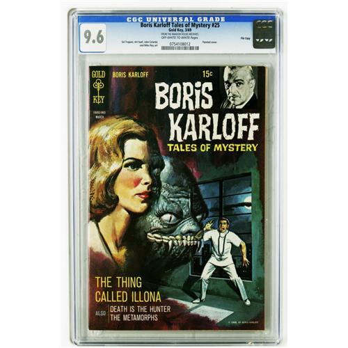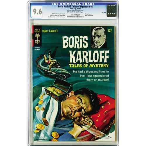 <B>Boris Karloff Tales of Mystery File Copies CGC Group (Gold Key, 1963-71).</B></I> All issues in this group except one are CGC 9.6, and all have been certified with "off-white to white" page quality. As of this writing (4/06), <I>every copy</B></I> in this group is the sole highest-graded copy in CGC's census or tied for the highest grade yet assigned. Included here are #4 (CGC 9.4), #16, #25, #28, #30, and #38. Overstreet 2006 NM- 9.2 value for group = $174. <I>From the Random House Archives.</B></I>
