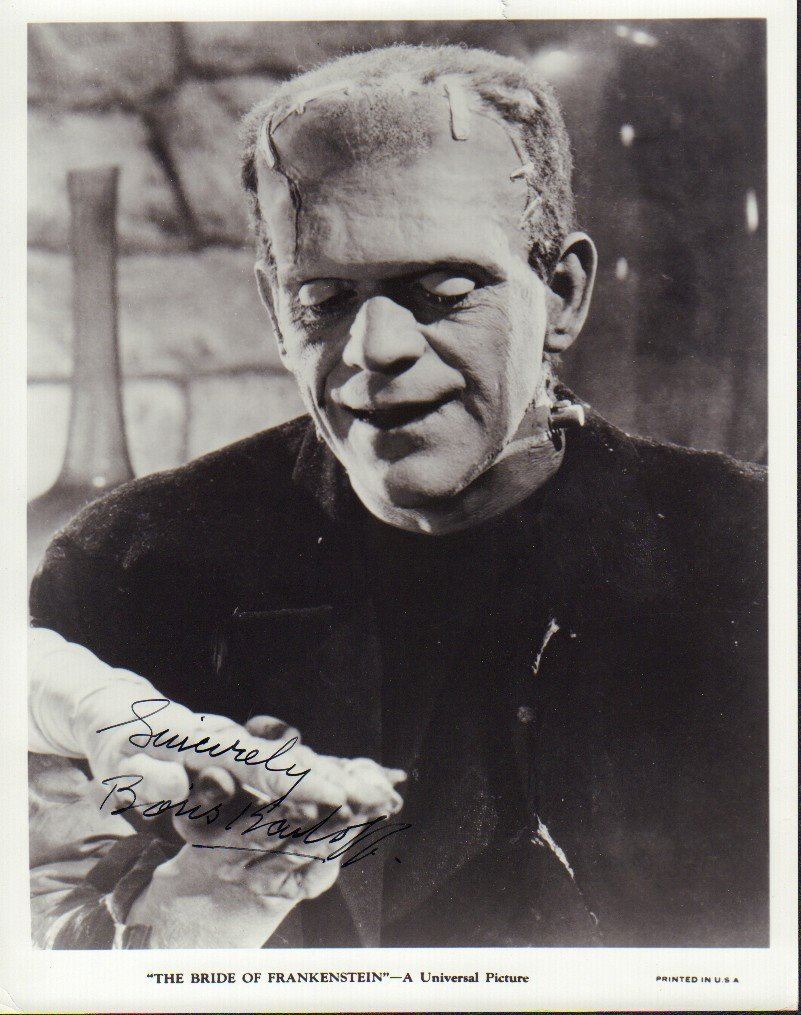 Black and white 8x10 photograph from the film The Bride of Frankenstein signed by Boris Karloff. The signature has been verified by Global Authentics and issued number GV873660. The photo is accompanied by the Global card and a letter of authenticity. All items come with a certificate of authenticity good for the life of the piece.