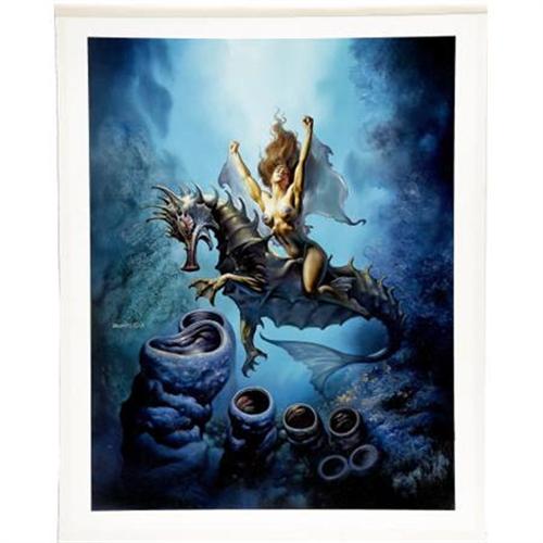 <B>Boris Vallejo - "Hippocampus" Painting Original Art (1991). <BR><BR></B></I> Artist Julie Bell served as the model for this delightful sea horse rider. This masterwork has to be seen in person in order to fully appreciate the lavish detail that Boris Vallejo has painted on this first-rate fantasy piece. The piece has an approximate image area of 21" x 27" and an overall size of 24" x 30", and is in Excellent condition.<BR><BR><BR><BR><b>Shipping:</b> Flat Material, Large (<a target="_blank" href="http://www.heritageauctions.com/common/shipping.php">view shipping information</a>)
