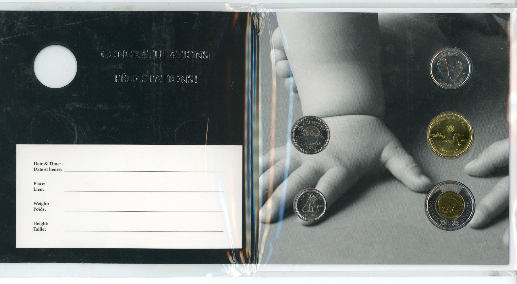 Born in 2013 set of 5 coins including Baby Feet 25 Cents only available in this set. Housed in its original RCM folder of issue.